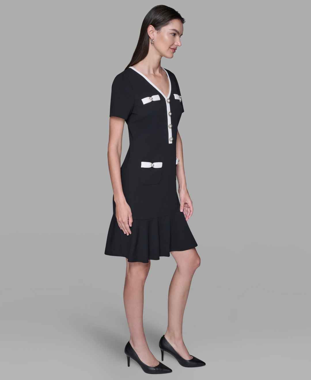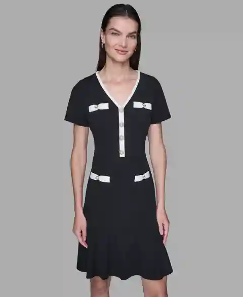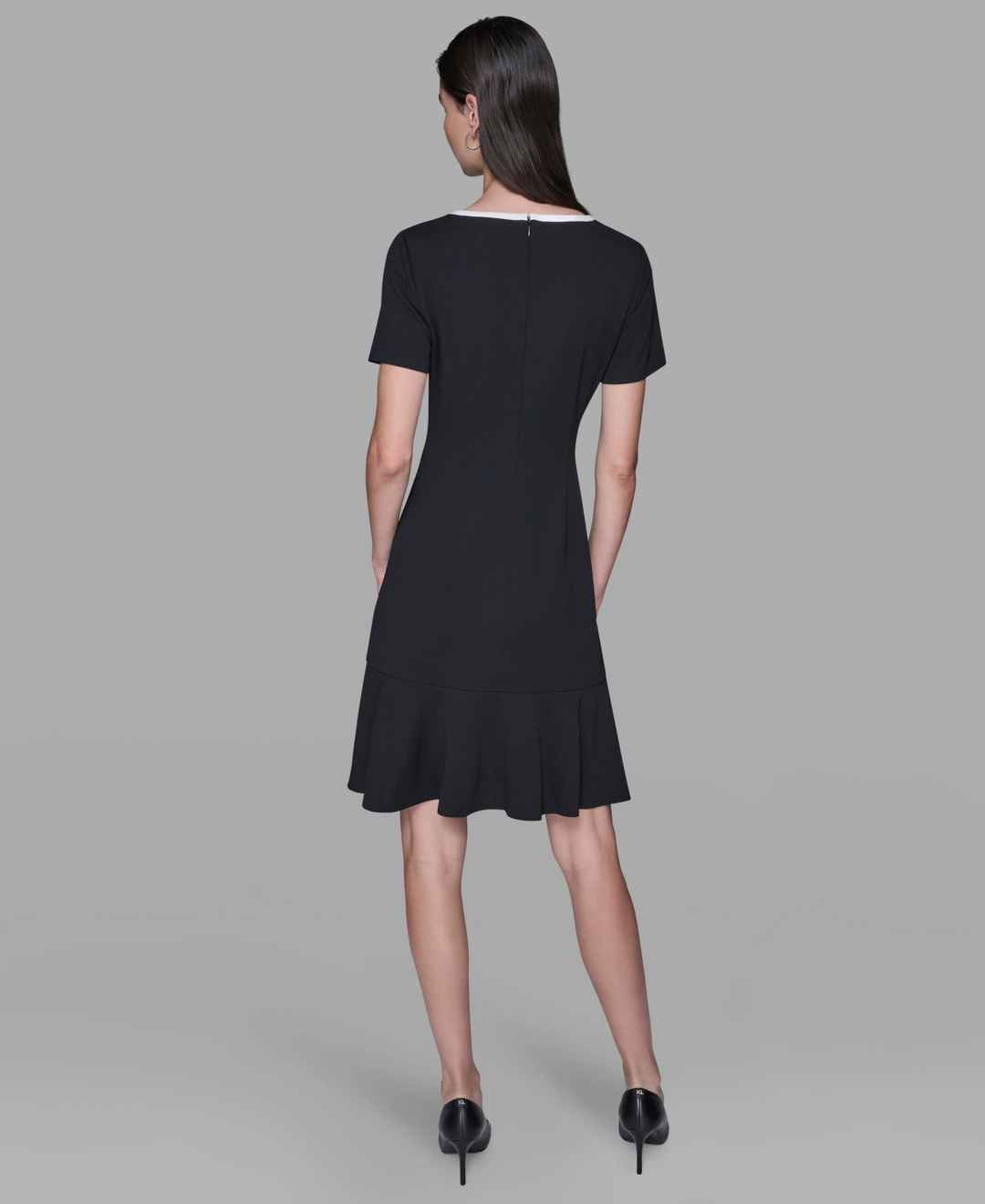 Home Karl Lagerfeld Paris Karl Lagerfeld Paris Women's Contrast-Trim Flounce-Hem Dress - Black/ Soft White