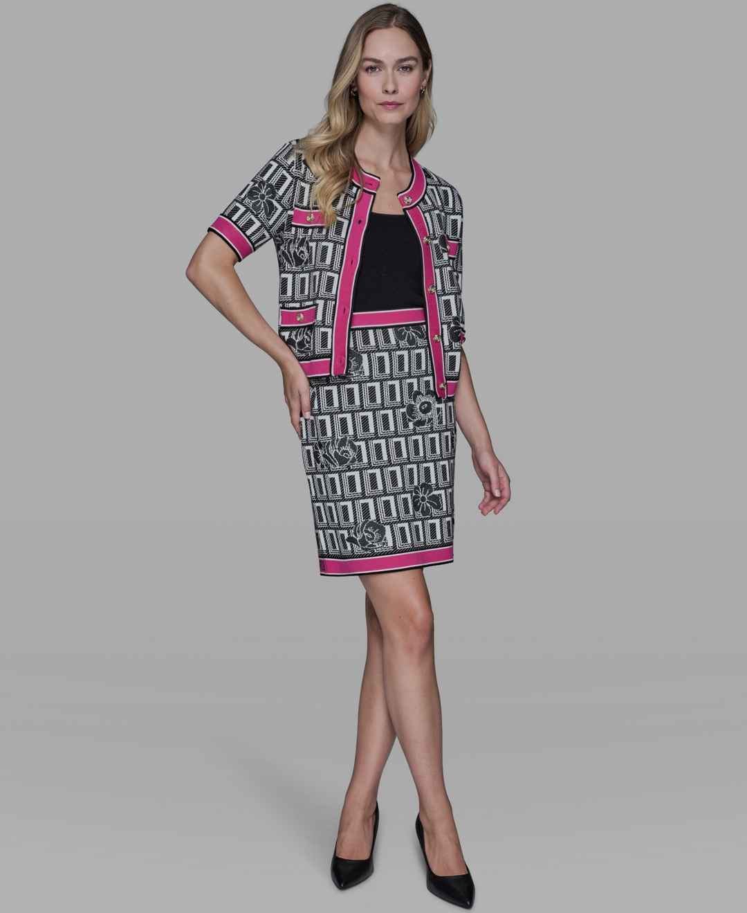 Home Karl Lagerfeld Paris Karl Lagerfeld Paris Women's Printed Sweater Skirt - Soft White/black/paris Pink