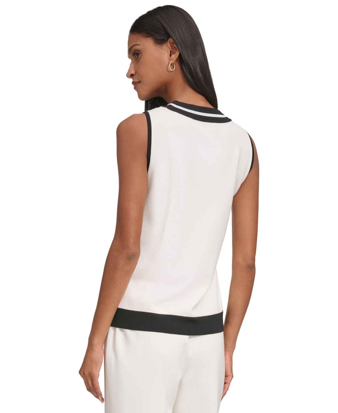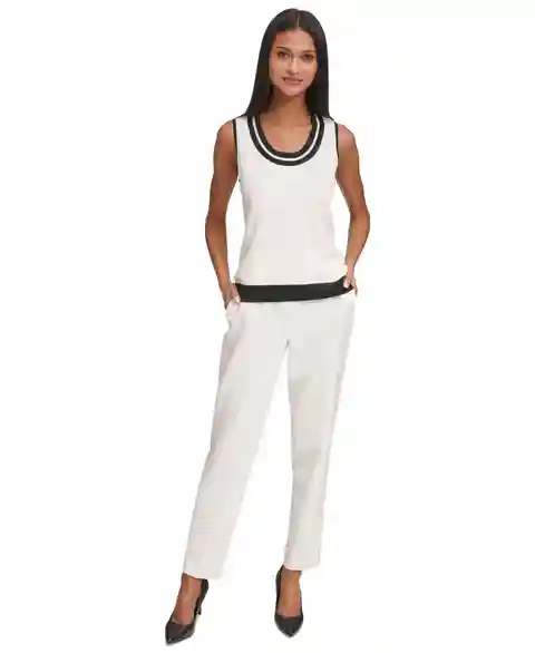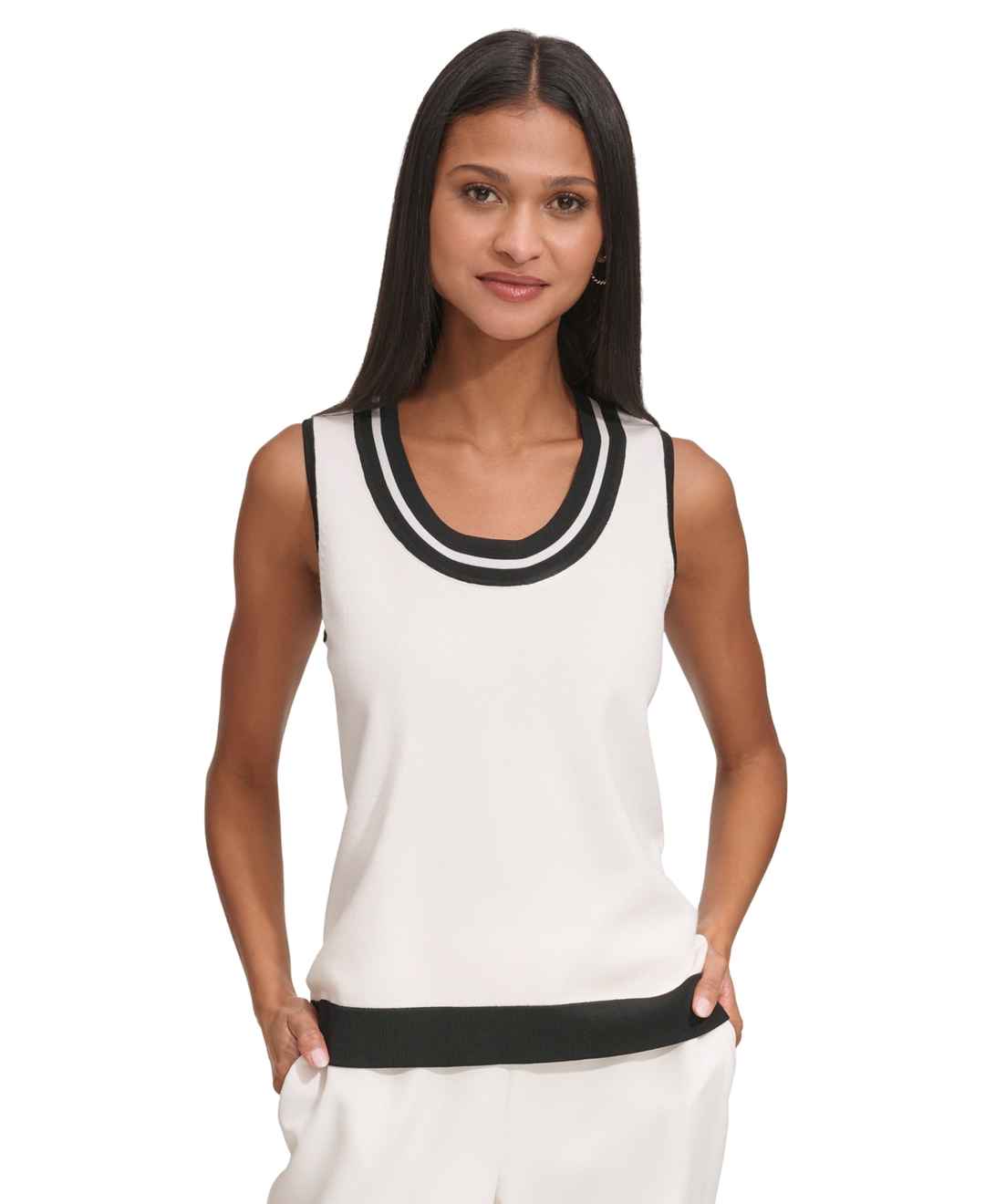 Karl Lagerfeld Women's Scoop-Neck Sleeveless Knit Top - Soft White/Black
