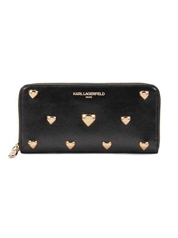Heart Charm Zip Around Wallet - Black Gold