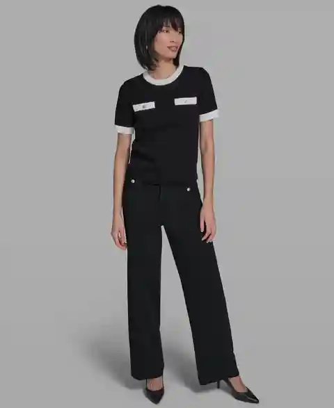 Blend functionality with knitwear style in this Karl Lagerfeld Paris sweater, designed with a crewneck for a timeless finish. Dual front pockets add utility, while a soft fabric offers matchless comfort.