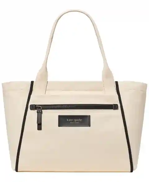 Maximum storage meets effortless style in this large canvas tote bag from kate spade new york, equipped with a drop-in zip pouch, front pockets and back luggage slip. The zip-top closure keeps everything secure on busy days.