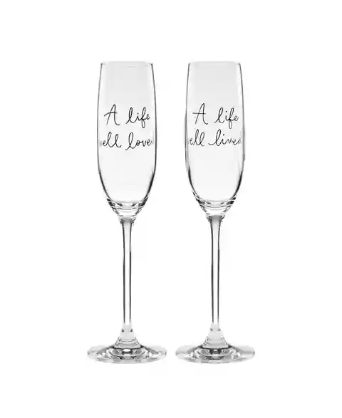 How sweet make a toast to the one you cherish the most. Featuring, "A life well loved," on one glass and, "A life well lived" on another. Use this inseparable pair to celebrate all things that should be appreciated in life.