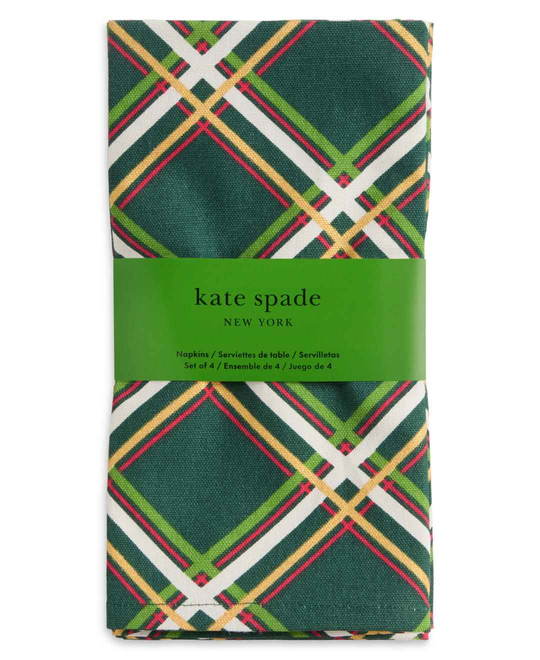 Add a touch of elegance and holiday cheer to your dining table with the kate spade new york acrobat plaid holiday cloth napkin 4-pack set. This Christmas napkinset features four festive fabric napkins that will enliven your tablescape when entertaining.