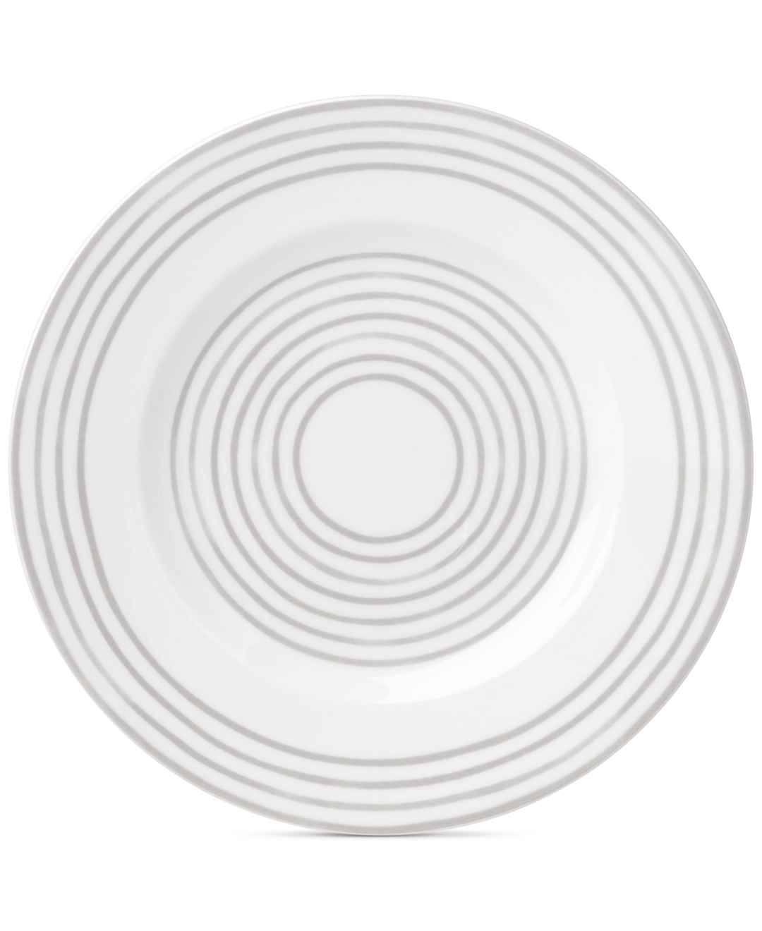 Concentric circles with a hand-painted feel create a captivating plate that accents the kate spade new york Charlotte Street West Grey Collection.