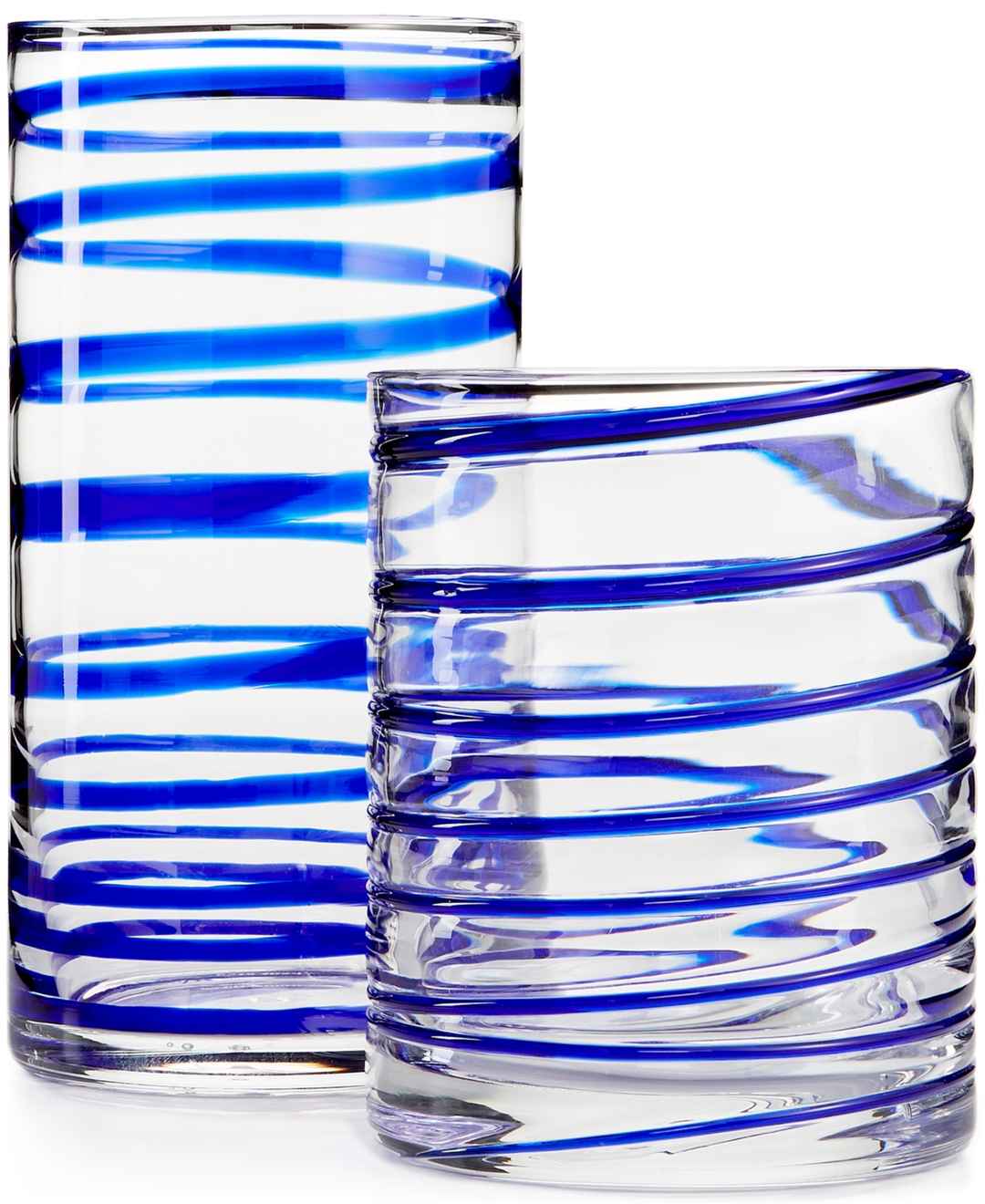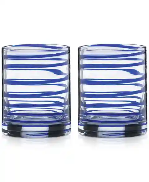A cobalt blue spiral adds a fun twist to the Charlotte Street double old-fashioned glasses by kate spade new york.