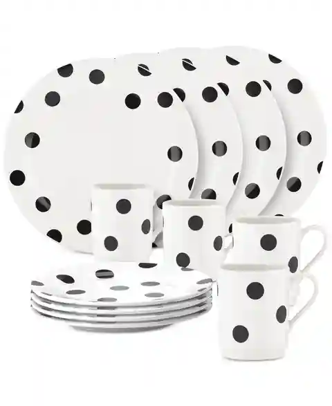 This 12-piece scatter dot dinnerware set from kate spade new york gives you everything you need to add fun to any meal. The service for four is made of durable stoneware that's dishwasher and microwave safe.