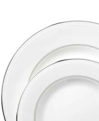 Express the best of taste at the table. Lustrous banded details add a crisp, clean finish to the white china accent plate.
