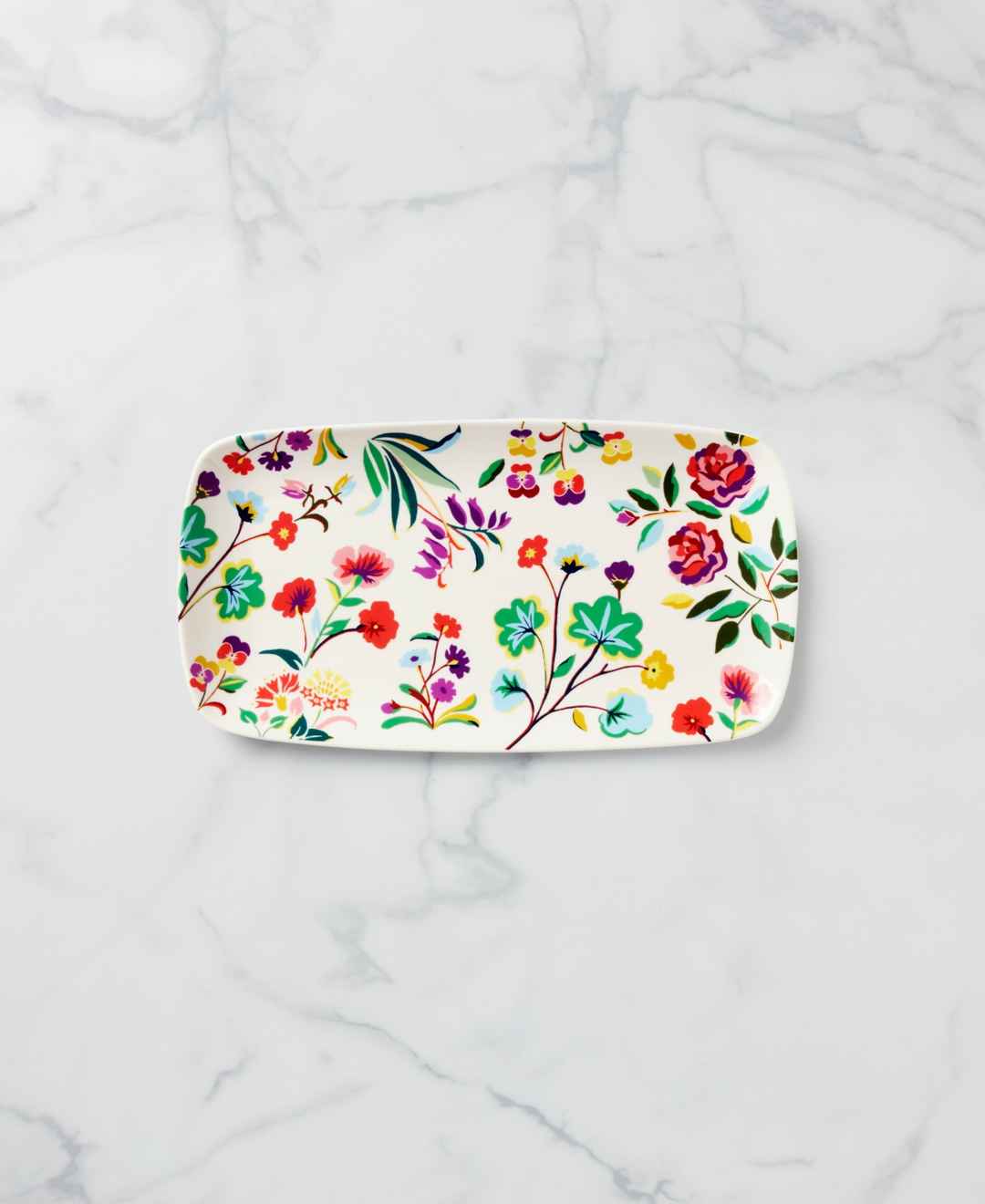 Featuring a garden of flowers, kate spade new york's hors d'oeuvre tray is ideal for serving up bite-sized snacks, be it pigs in a blanket or handmade sushi. Bonus no extra scrubbing required.