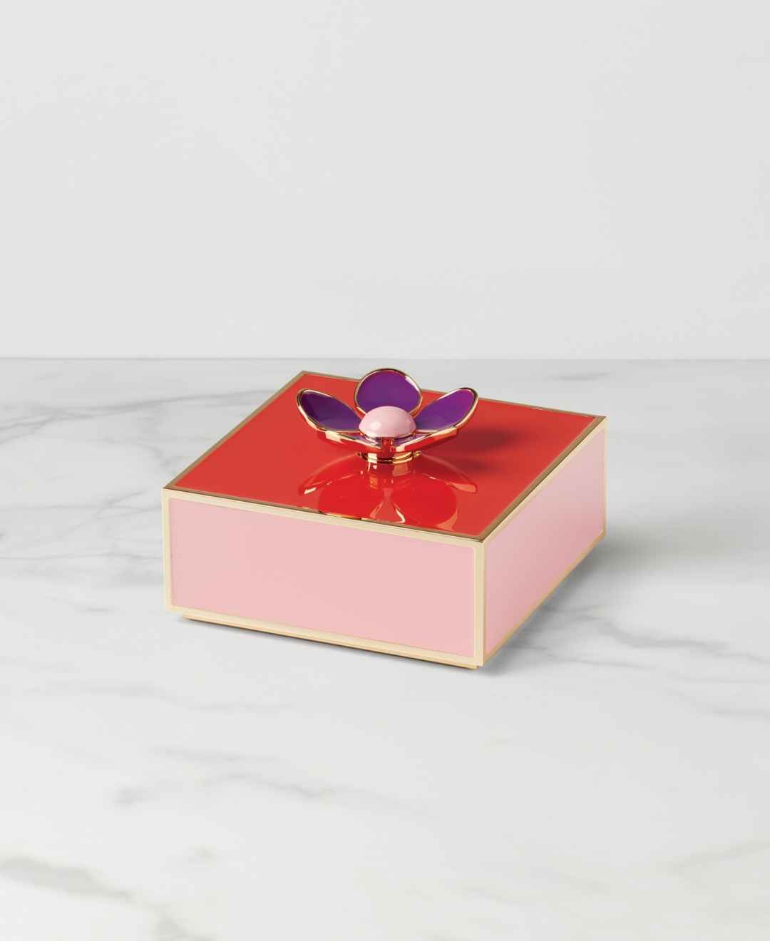 Jewelry, trinkets, miscellaneous cherished mementos. They all have a place in this pretty, flower-topped keepsake box by kate spade new york.