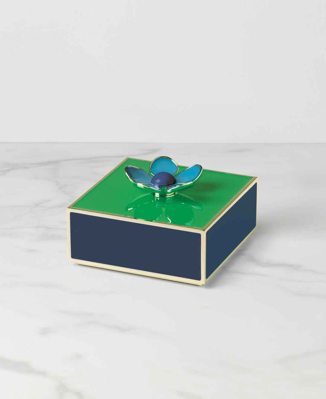Jewelry, trinkets, miscellaneous cherished mementos. They all have a place in this pretty, flower-topped keepsake box by kate spade new york.