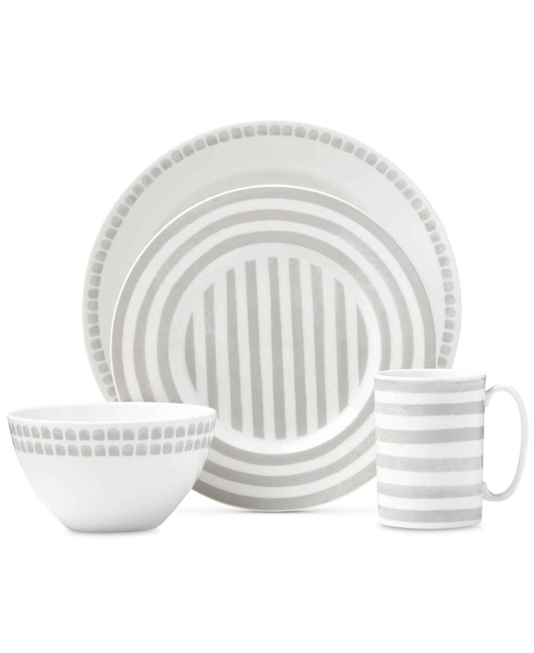 Stylish stripes and dotted strokes create a hand-painted look on each piece of the kate spade new york Charlotte Street North Grey Collection place setting.