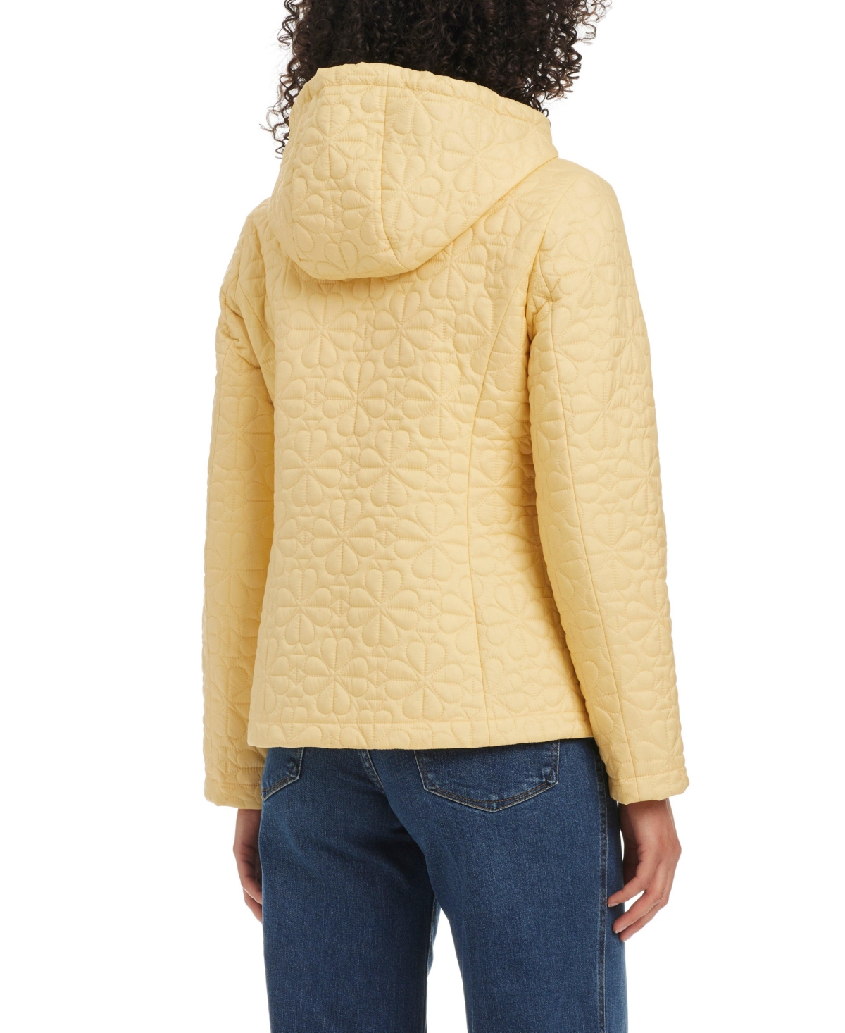 Crafted in nylon cire, this Short Spade Flower Quilt with Removable Quilted Hood features a metal zip front and a slightly shaped fit for a flattering look. On-seam pockets keep essentials close, while the removable quilted hood adds adaptable warmth and style. Cbl: 24 1/2" size S