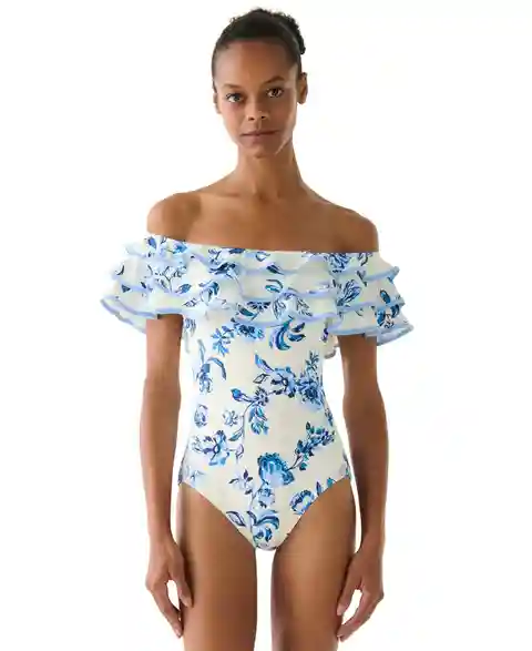 kate spade new york Women's Ruffle Printed One-Piece Swimsuit - Diamond Blue