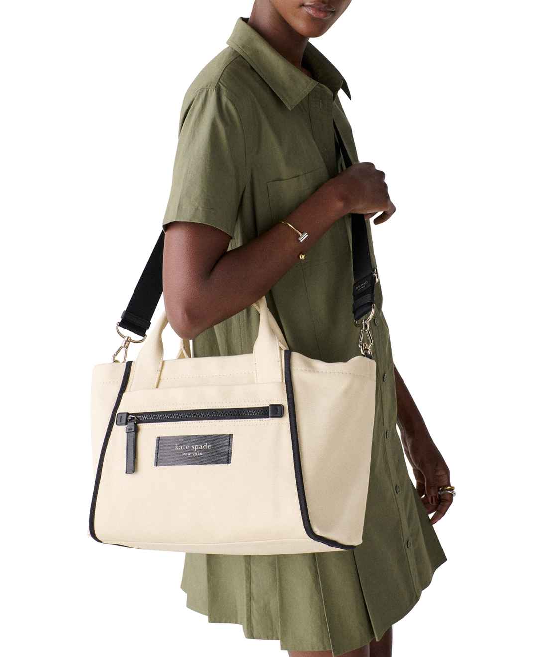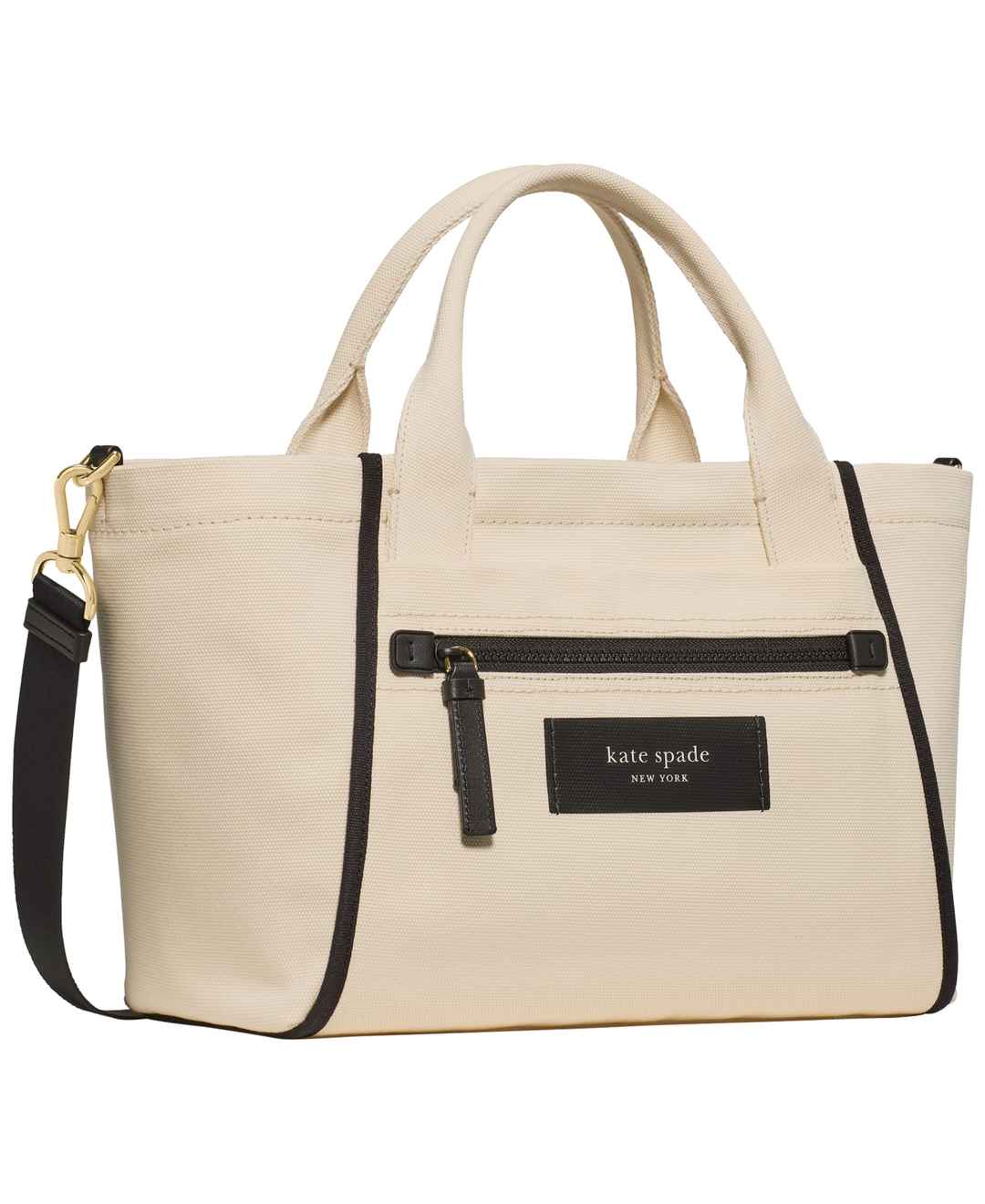 Spacious and stylish, this canvas tote bag from kate spade new york features a drop-in zip pouch and front slip and zip pockets for organized storage. The zip-top closure and versatile design make it ready for any adventure.