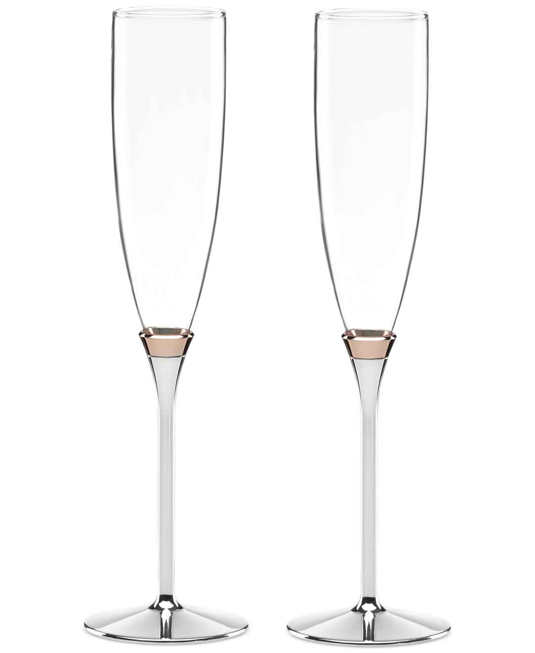 Toast to your favorite newlyweds with this elegant pair of rose gold and silver plated flutes from kate spade new york.