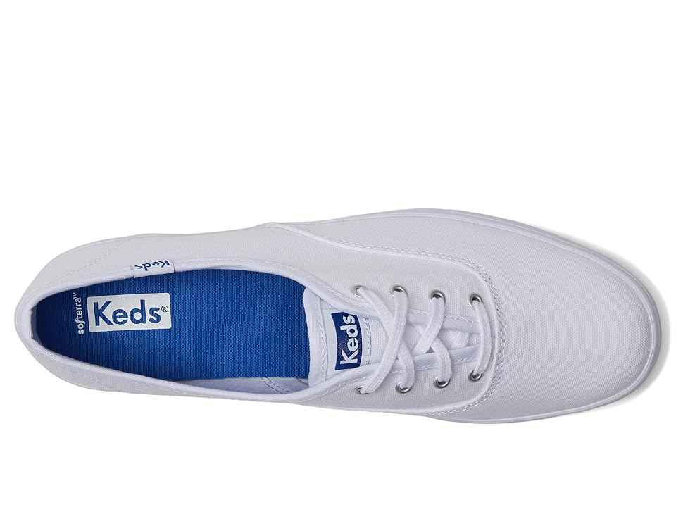 Stay active in all-day comfort and style by wearing the Keds The Platform Lace Up sneakers. Canvas upper. Soft and breathable mesh lining. PU Foam Softerra footbed. Lace-up closure. Brand detailing on the upper, tongue, and back heel. Platform bottom. Round toe design. Lightweight rubber outsole. Im...more