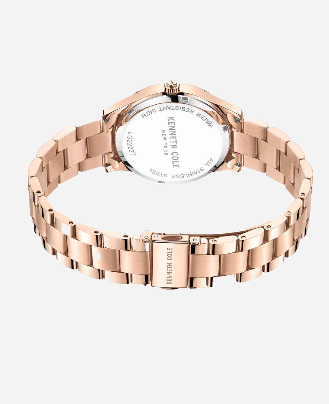 WHATS IN IT FOR YOU? Women's watch Rose gold round case with accented rose gold dial Hour/minute/second hands in rose gold finish Kenneth Cole logo detail Stainless steel bracelet band 3ATM water resistance Imported | Kenneth Cole | Classic Dress Watch With Stainless Steel Bracelet in ROSE GOLD