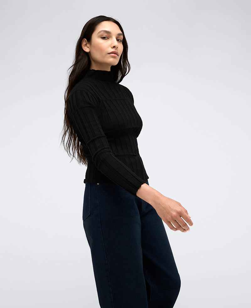 Kenneth Cole | Ribbed Long Sleeve Mock Neck Sweater in BLACK, Size: XS