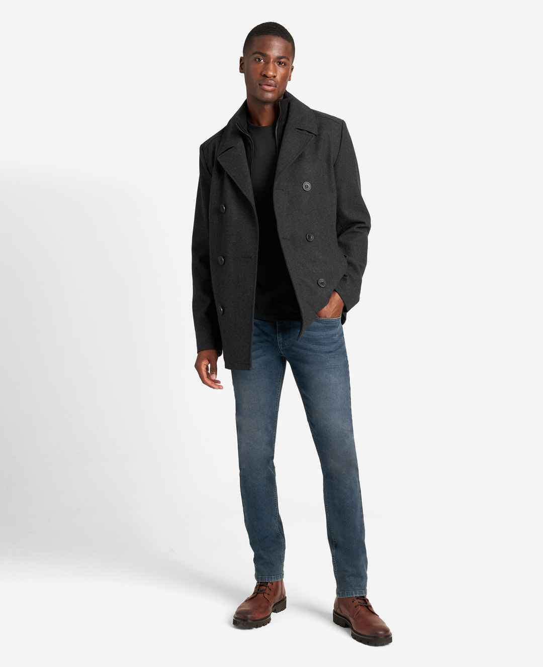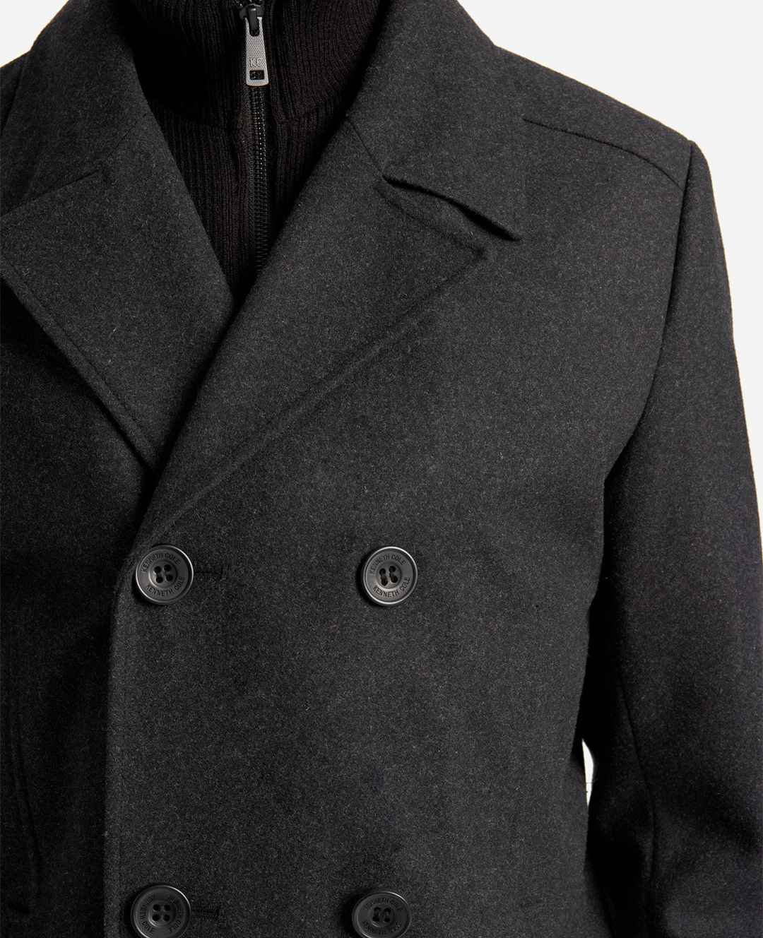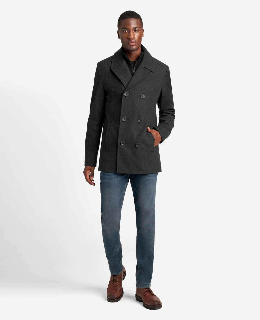 WHATS IN IT FOR YOU? Men's peacoat Notched Collar Rib knit inner bibe Double-breasted button-front closure Side seam pockets Branded detailing at sleeve Shell: 43% wool, 43% polyester, 5% acrylic, 3% cotton 3% rayon 3% nylonShell back: 100% polyurethane Dry clean only Imported | Kenneth Cole | Wool ...more
