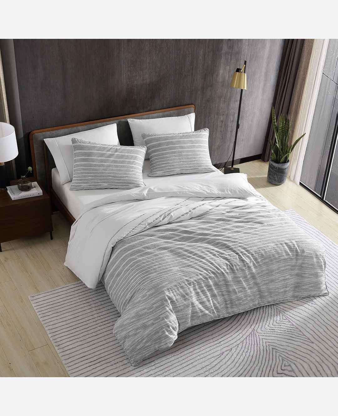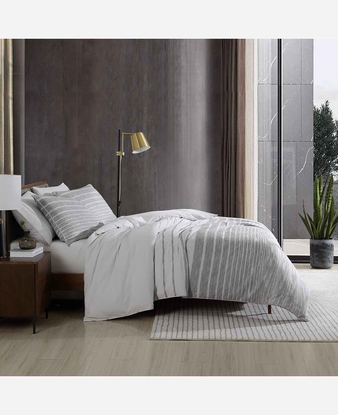 Kenneth Cole | Abstract Stripe Comforter + Sham Set in MEDUIM GREY