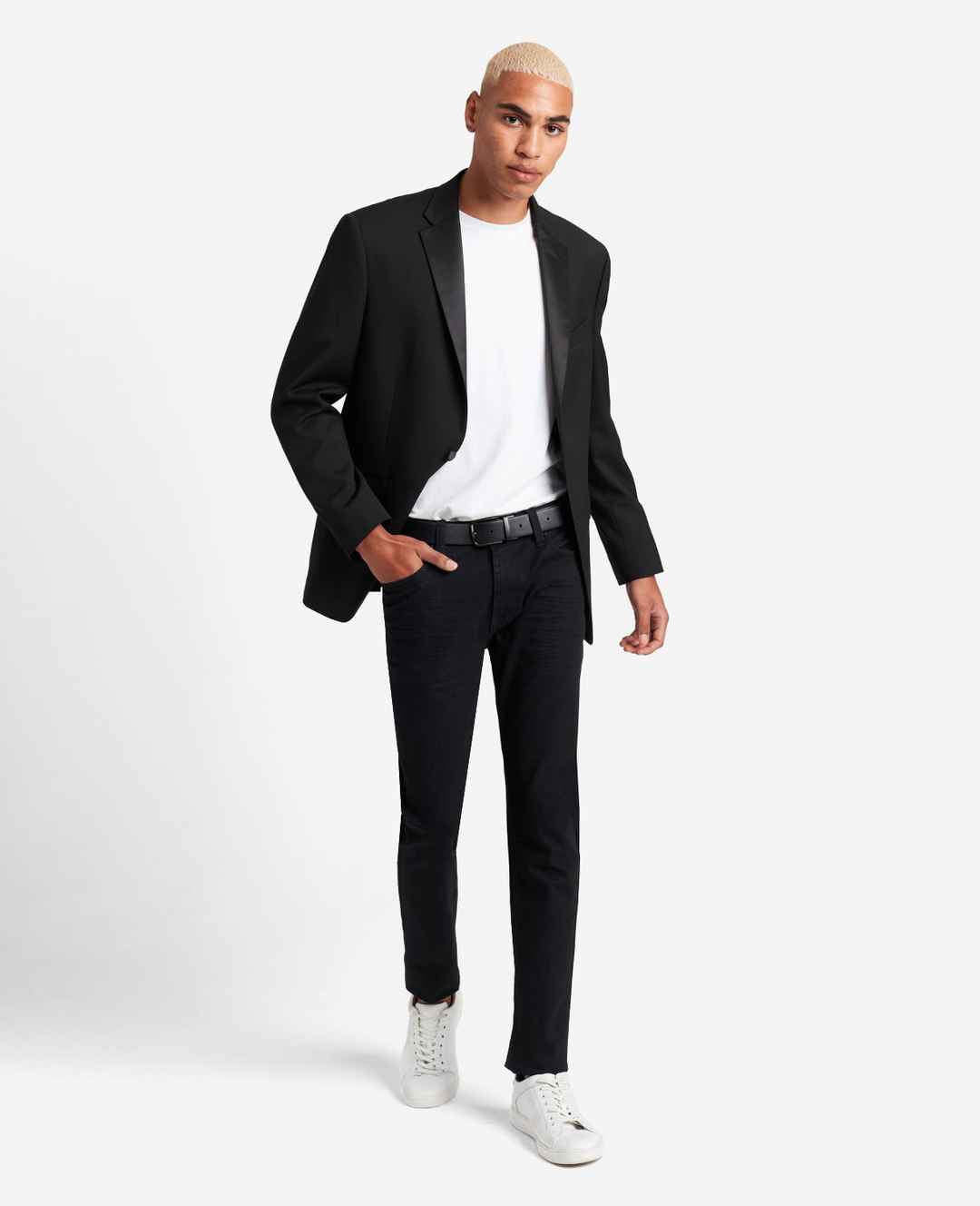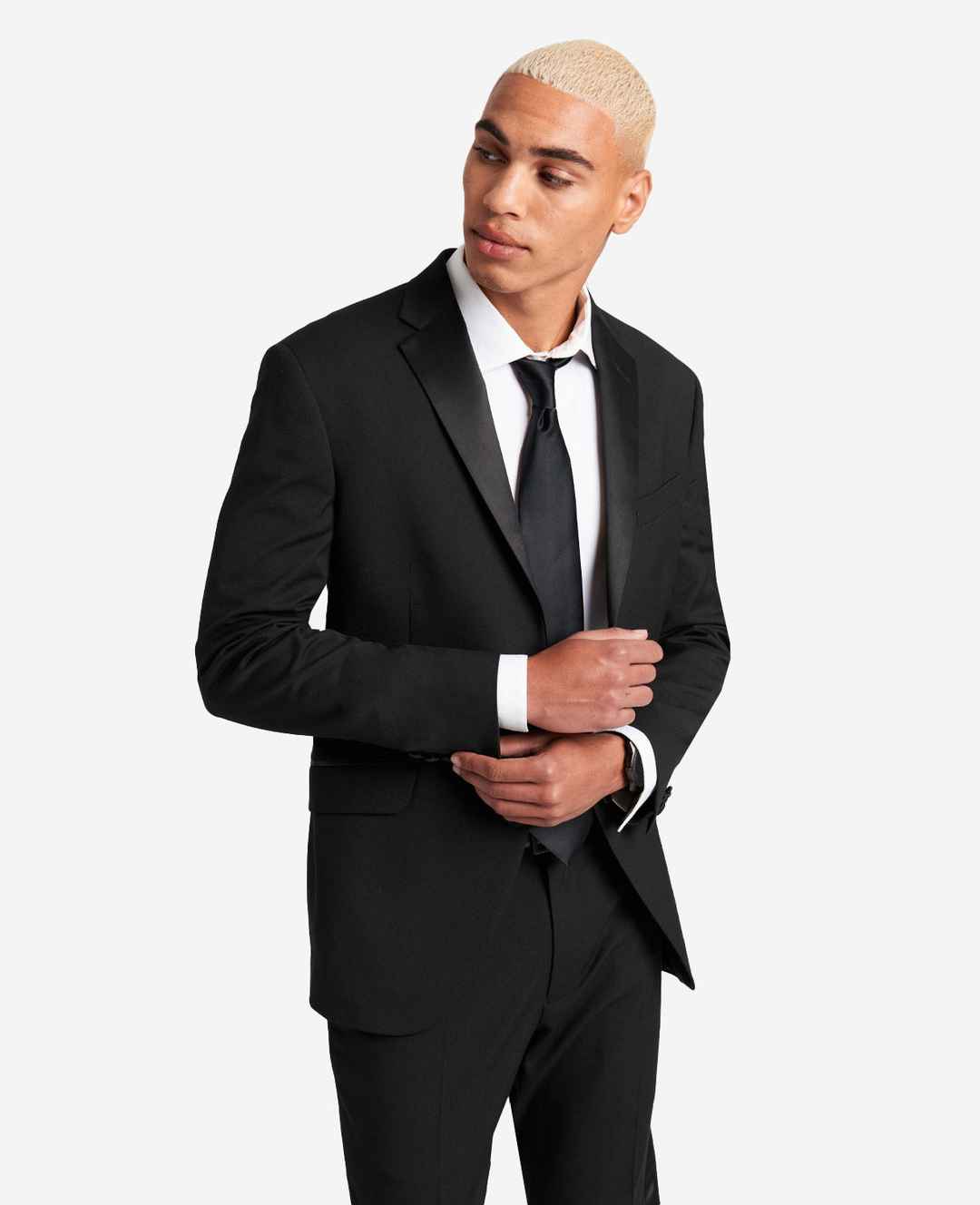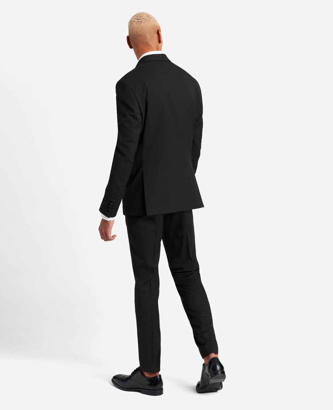 WHATS IN IT FOR YOU? Kenneth Cole Reaction men's 2-button tuxedo suit Slim fit Fully lined Stretch suiting fabric Jacket: notched satin lapel, higher armhole placement with stretch, single-breasted with matching shell-look buttons, double vented, side flap pockets, welt pockets at breast and interio...more