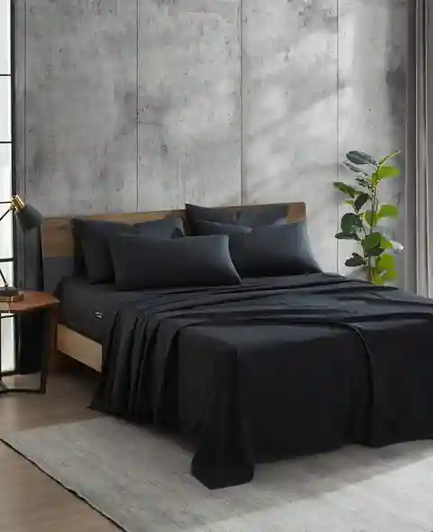 Home  Kenneth Cole  Kenneth Cole | Solution Solid Sheet Set in BLACK, Size: Twin