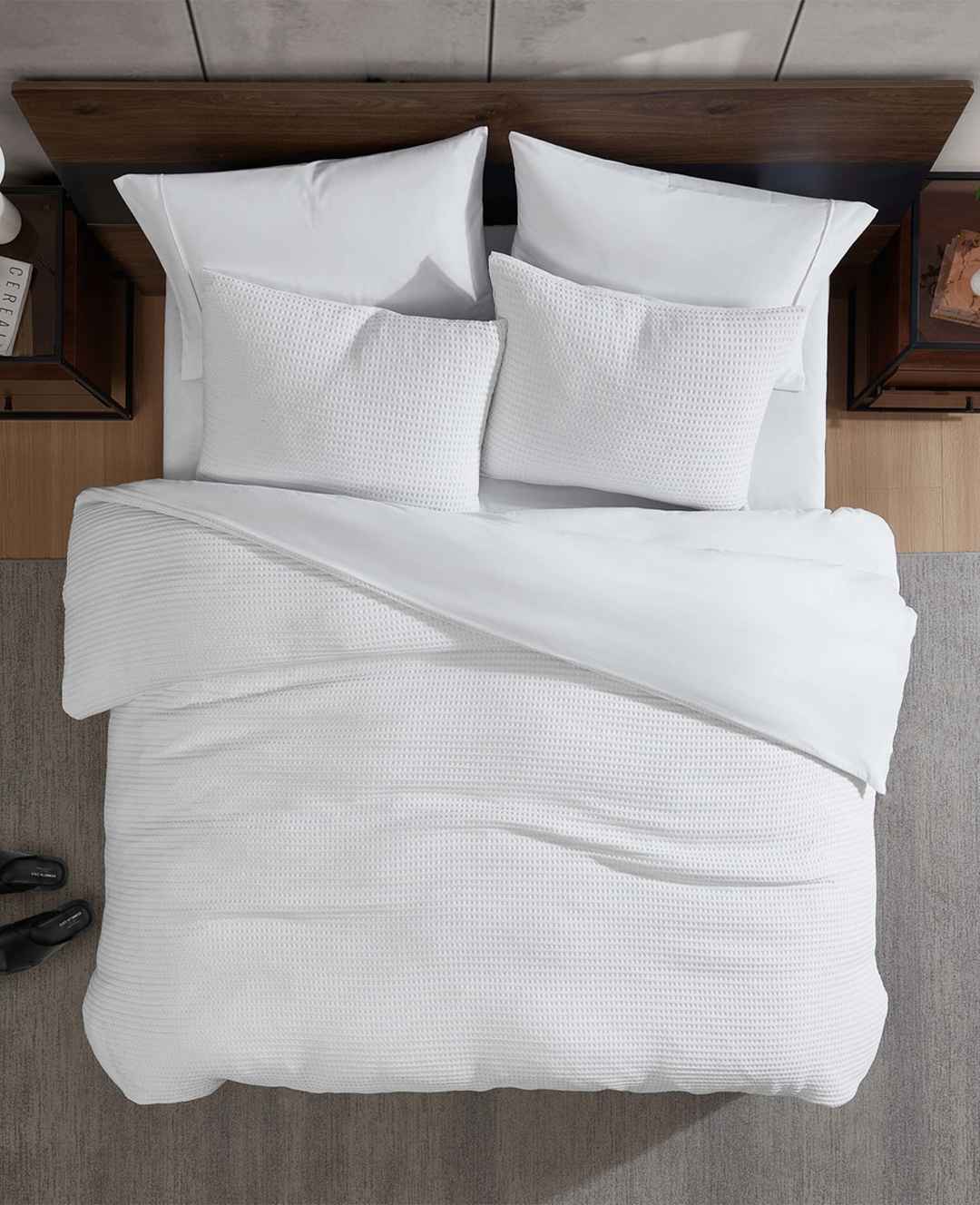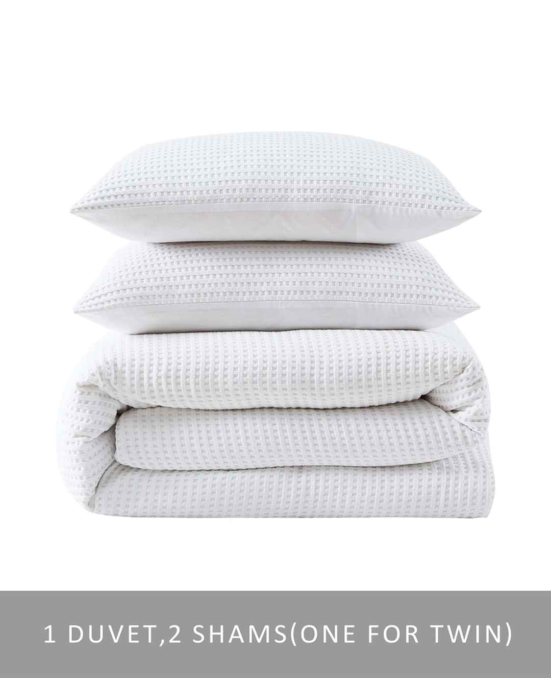 WHATS IN IT FOR YOU? Reversible duvet cover set Full/Queen duvet set includes 1 duvet and 2 standard shams King duvet set includes 1 duvet and 2 king shams The unique waffle texture is super soft and cozy Reverses to ultra-soft microfiber fabric Duvet cover features a button closure with four inner ...more