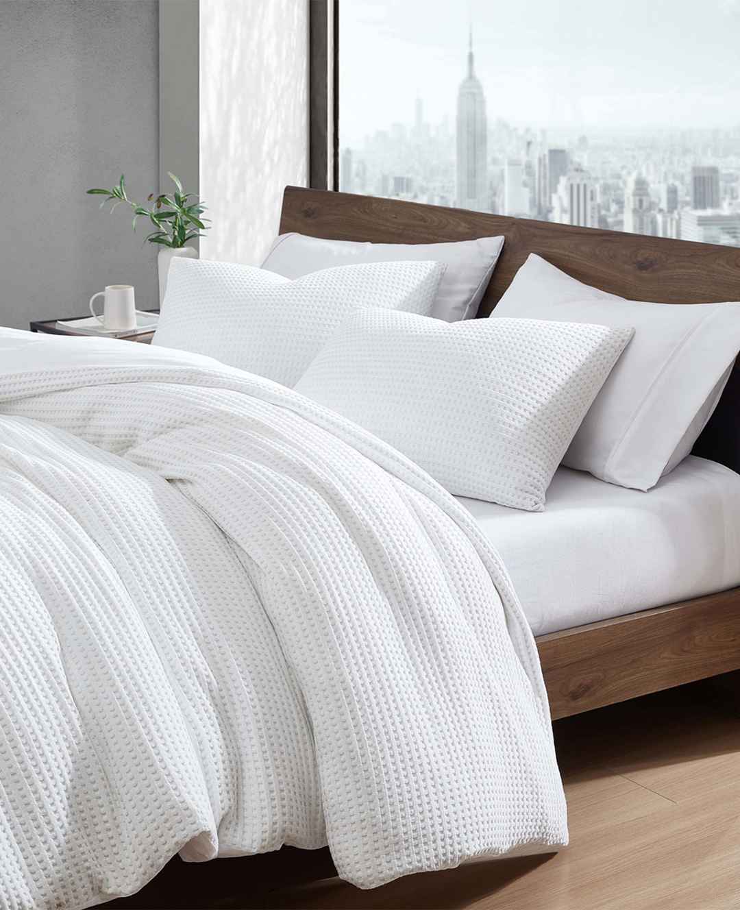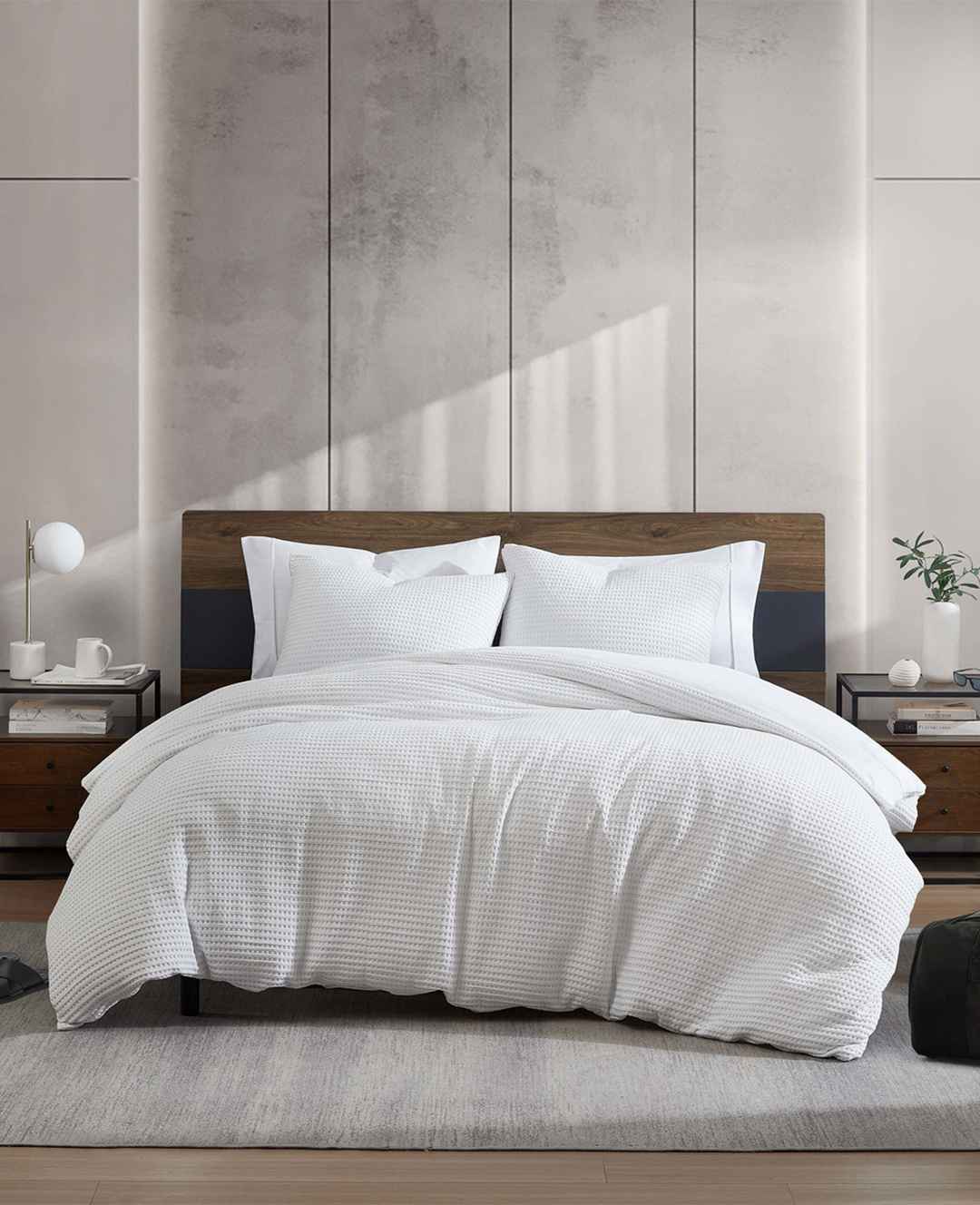 Kenneth Cole | Reversible Solid White Waffle Duvet Cover Set, Size: F/Q