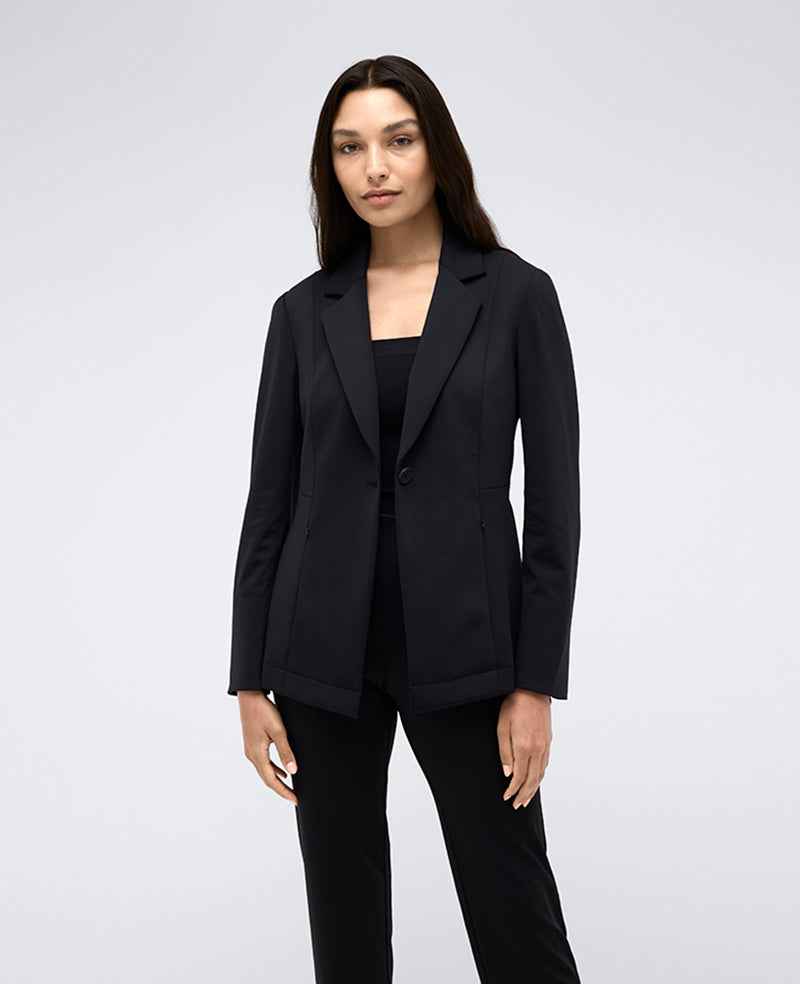 WHATS IN IT FOR YOU? Stretch blazer Notched lapel Side zip pockets Athletic-stretch for a comfortable feel and easy movement Single back vent for a great fit with extra mobility Single-breasted with matching shell-look buttons Partially lined 80% nylon, 20% elastane Dry clean only Imported Model Spe...more