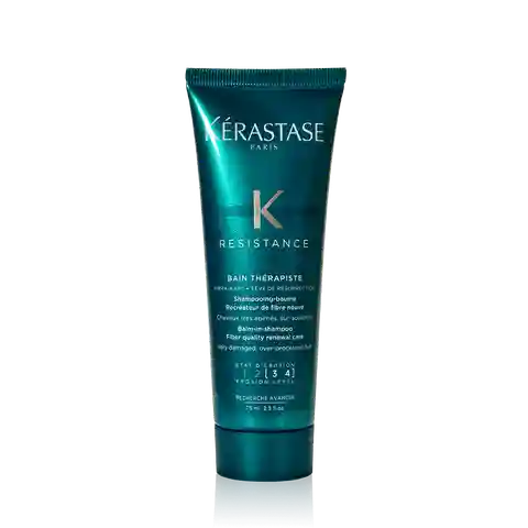 Repairs very damaged hair fiber. Heat protectant with 450F thermo-protection. Essential nutrition for healthy hair. Soothing texture for itchy scalp. Repairs Damage Nourishing Reduces Friction . | Krastase - Bain Thrapiste Luxury Shampoo - 75 ml
