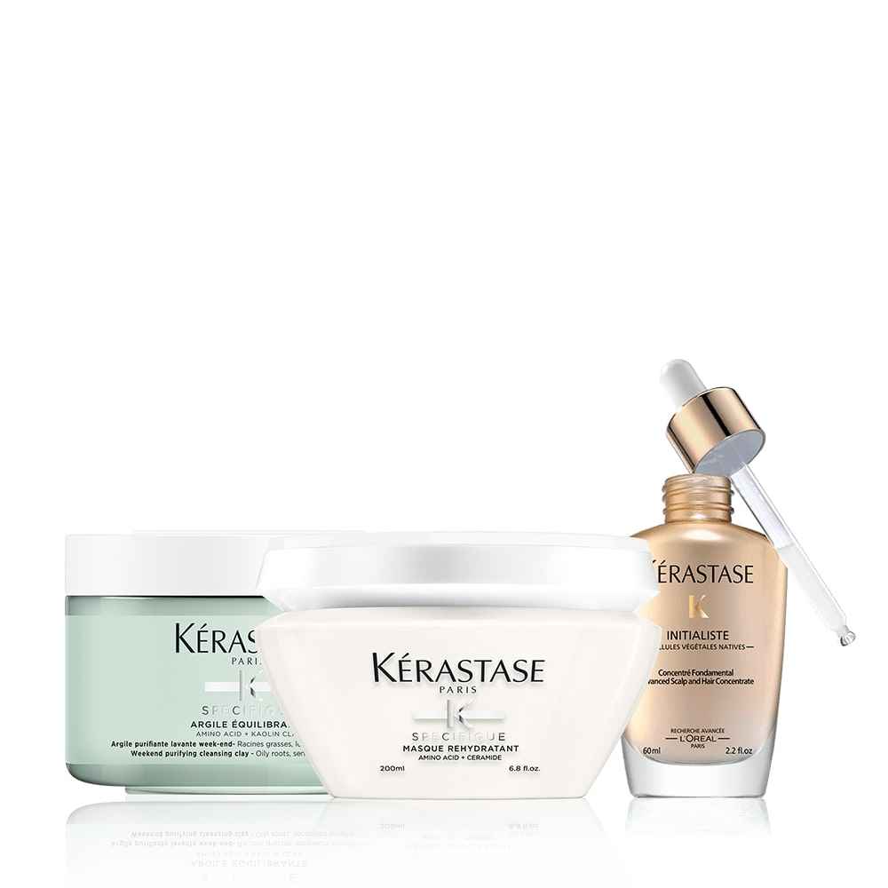 Soothing set for dry scalp. Aims to reduce itchiness, and gives hair a light, airy feel. Product set includes a cleansing clay, hair mask and iconic scalp & hair treatment. Your routine includes: Argile quilibrante Cleansing Clay, 250ml A purifying clay that deeply, yet gently cleanses and purifies ...more