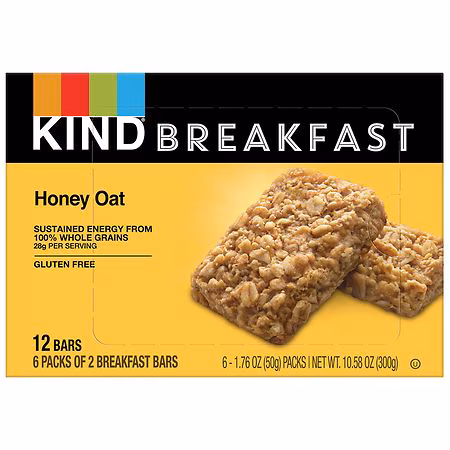 KIND Breakfast Honey Oat bars are a wholesome, healthy snack made with 100% whole grains for sustained energy. KIND Honey Oat breakfast bars are made with five super grains - oats, buckwheat, millet, amaranth and quinoa and baked with a touch of honey for a chewy, soft baked addition to your breakfa...more