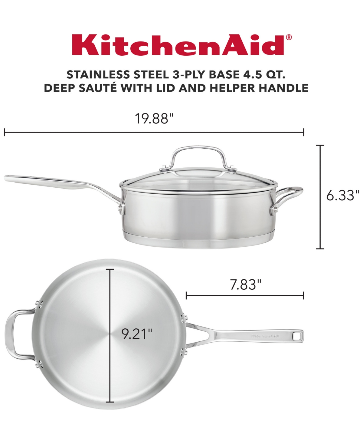 A performance workhorse you'll turn to for everything from a quick stir fry to a slow simmer, this KitchenAid saute pan features five layers of stainless steel for amazing heat performance that lasts. Tall sides give you more room to work.