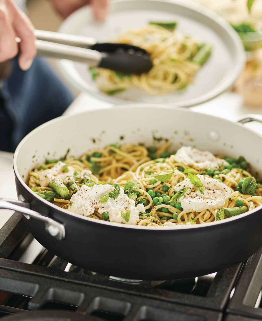 Made for everyday cooking, this KitchenAid 5-quart ceramic nonstick saute pan is finished with an easy-clean, ceramic nonstick interior and a durable hard-anodized exterior, crafted with a thick, forged aluminum base and rim for excellent heat conduction and durability.