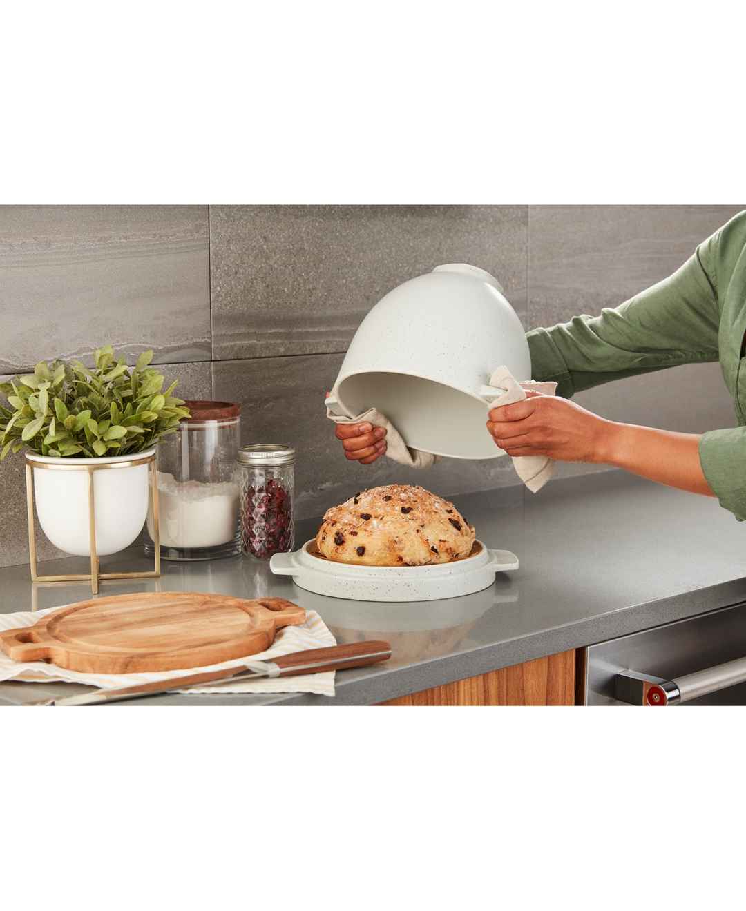 KitchenAid Ceramic Bread Bowl with Baking Lid KSM2CB5BGS - Grey Speckled