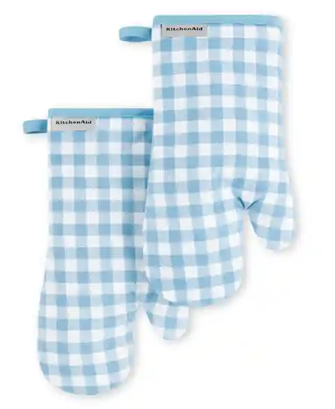 KitchenAid Gingham Oven Mitt 2-Pack Set, 7" x 13" - Blue Velvet