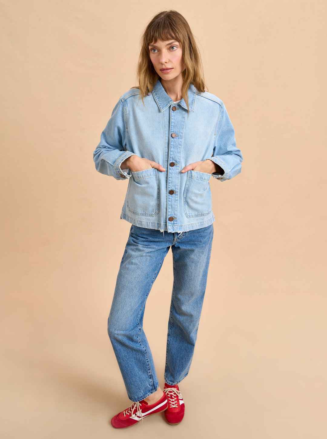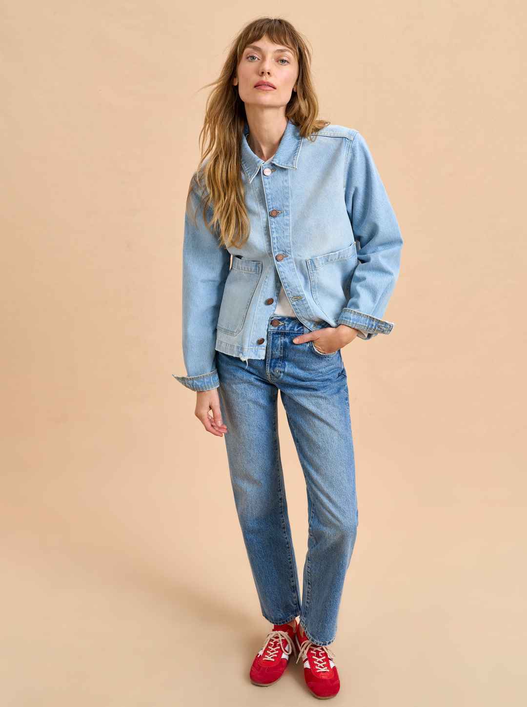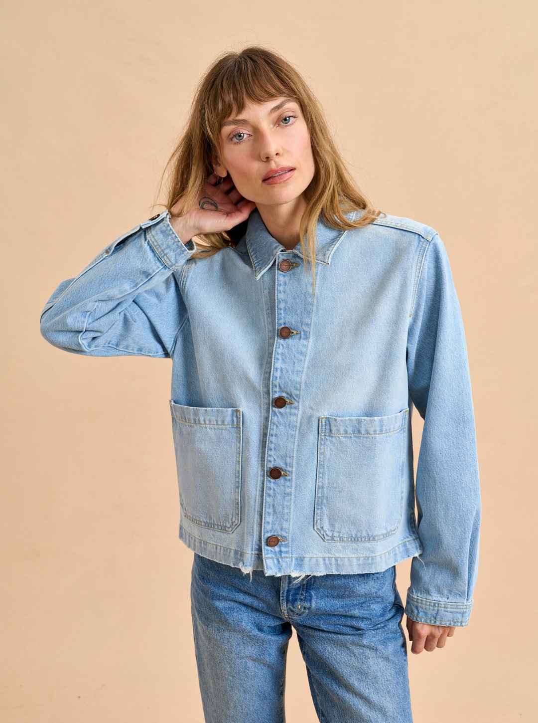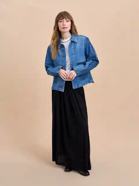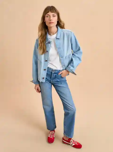 Based on the classic French painter jackets, this one in non-stretch denim is cropped but roomy to go over a knit and an easy winner when paired back to other denim.