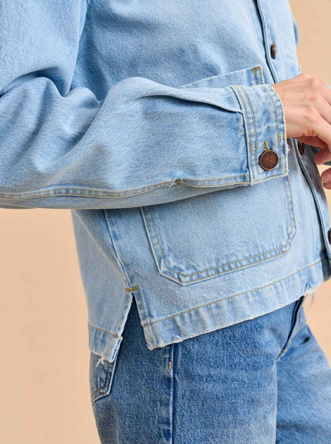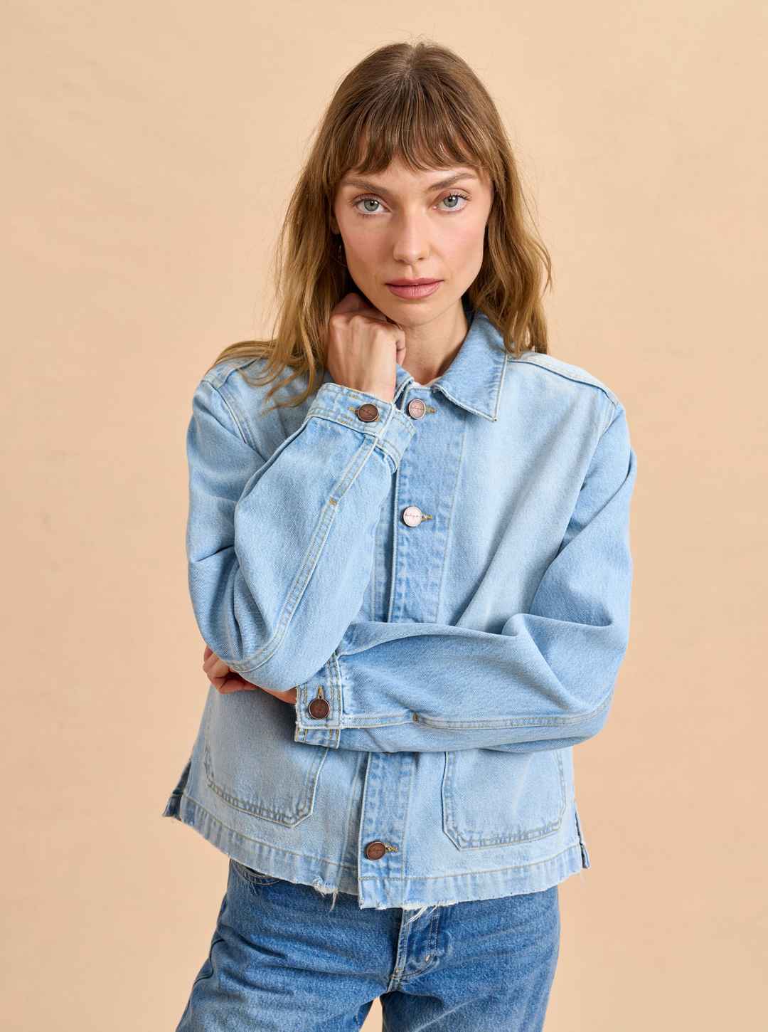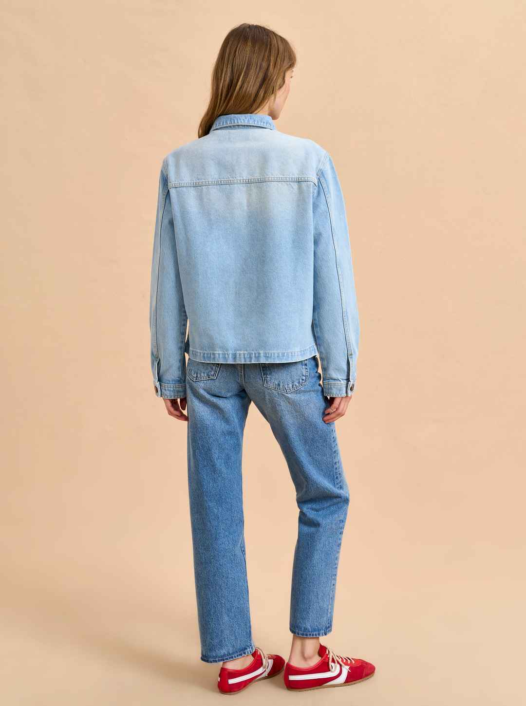 Based on the classic French painter jackets, this one in non-stretch denim is cropped but roomy to go over a knit and an easy winner when paired back to other denim.