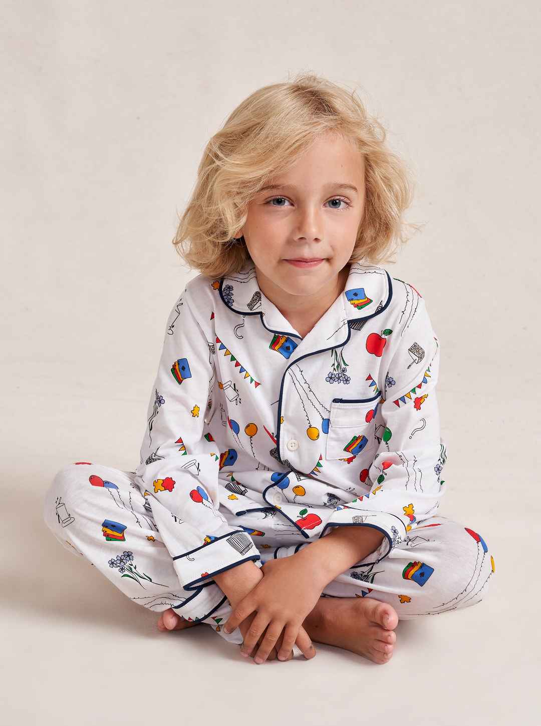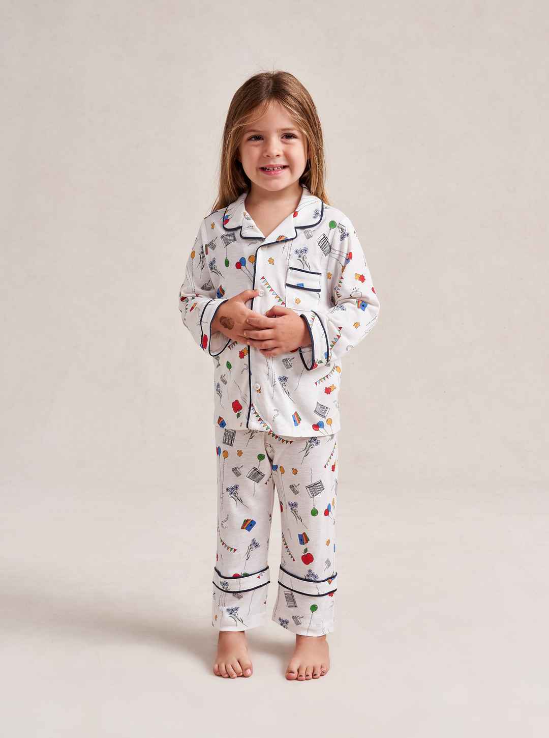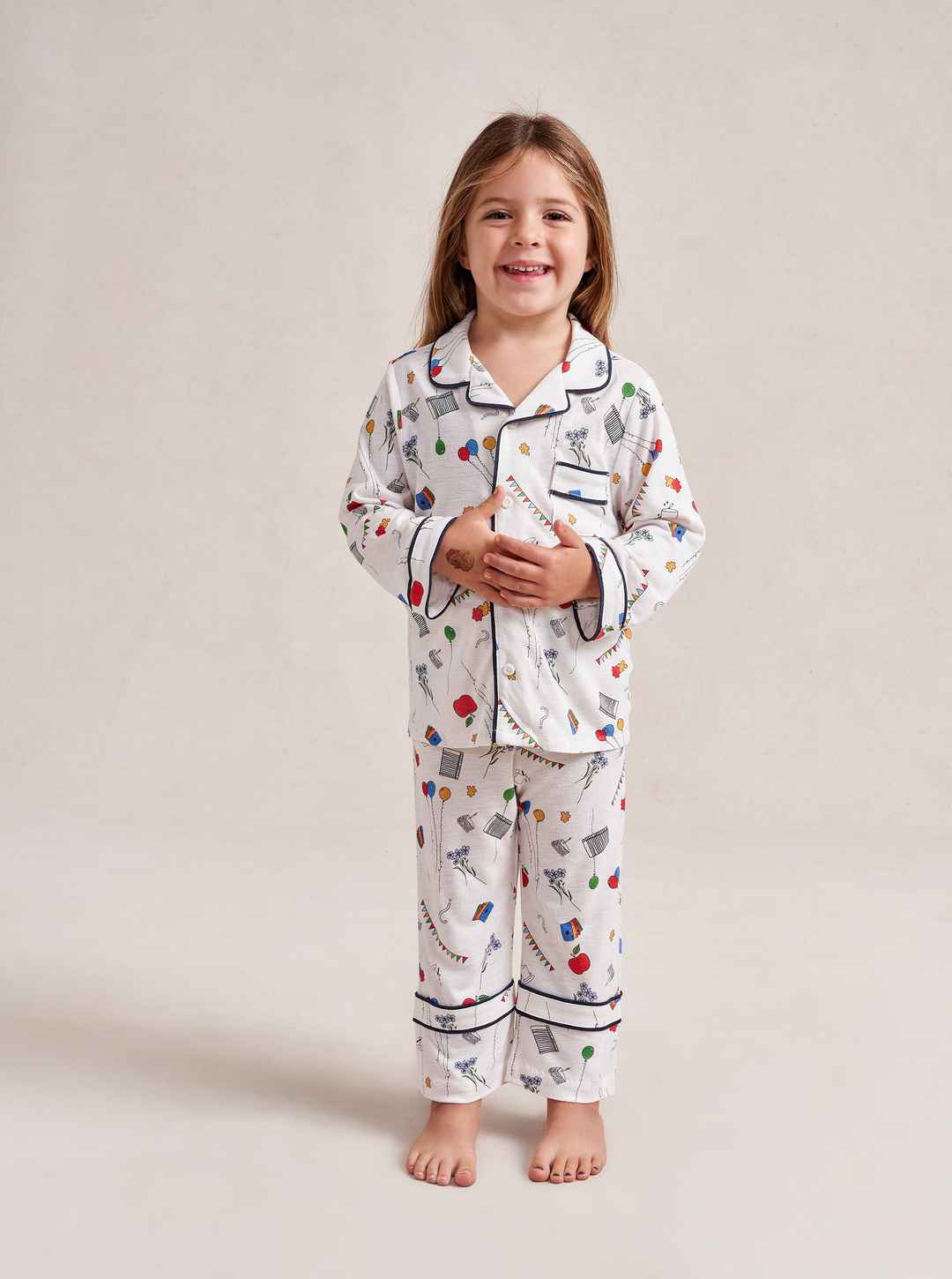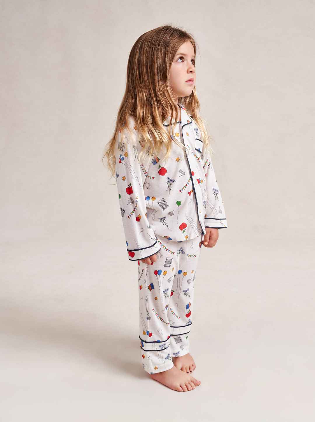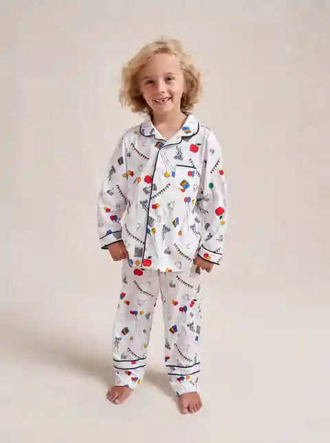 Made in collaboration with Observed By Us, the design line founded by Kirsten Dunst and Jessica Herschko, these limited editionkids cotton pajamas are a playful and nostalgic take on sleepwear featuring Observed By Us' hand-drawn, story-book illustrations. This printed white pajama set features a re...more
