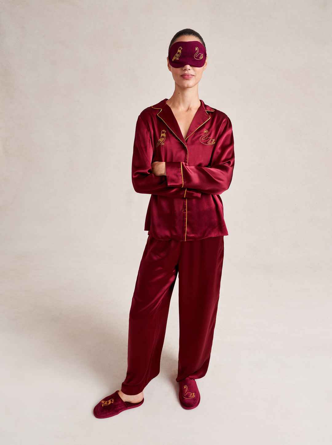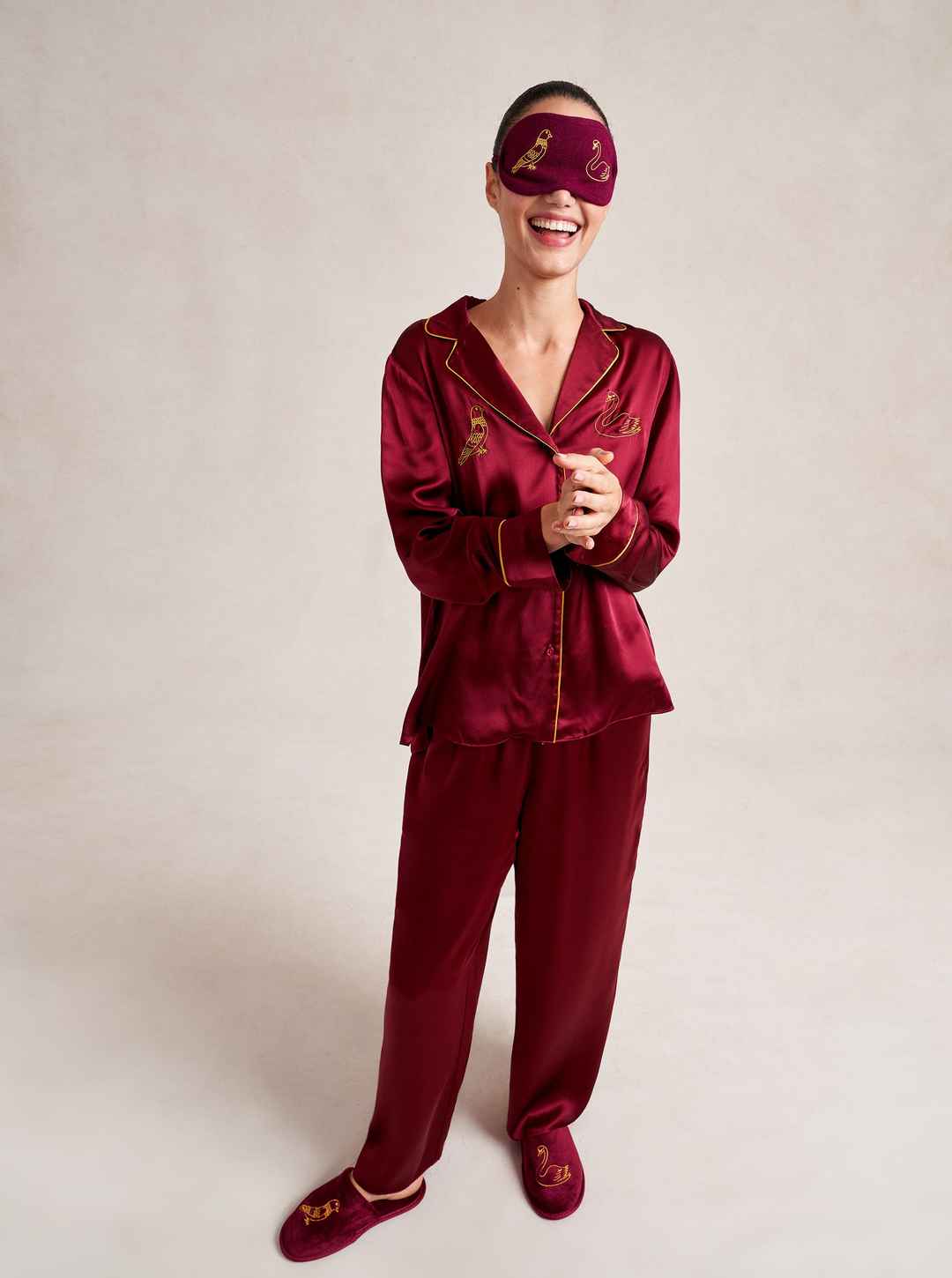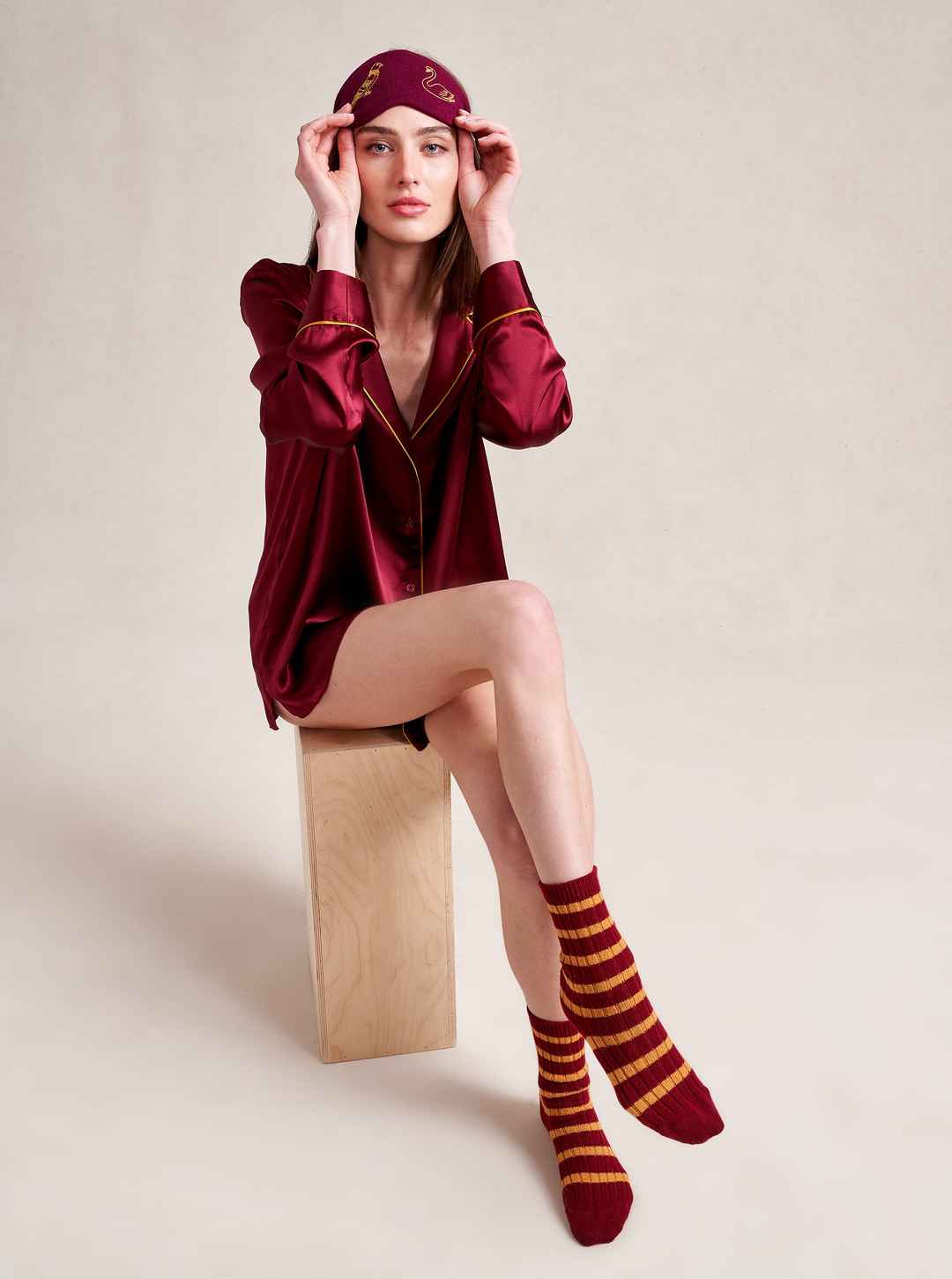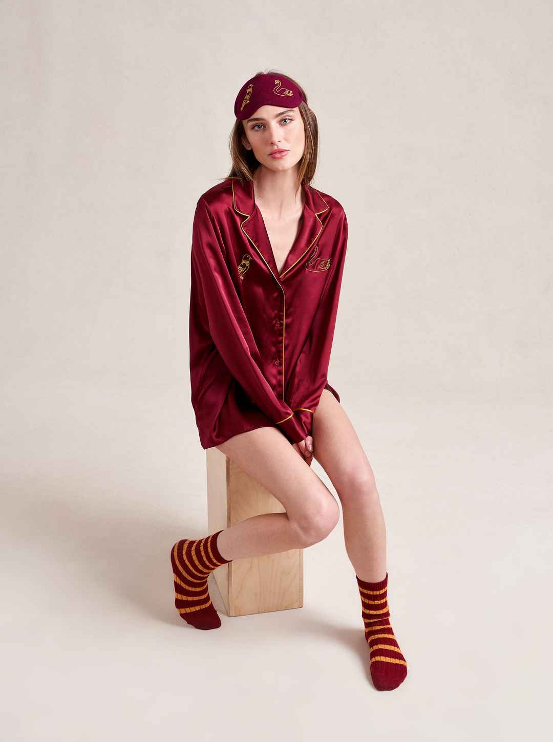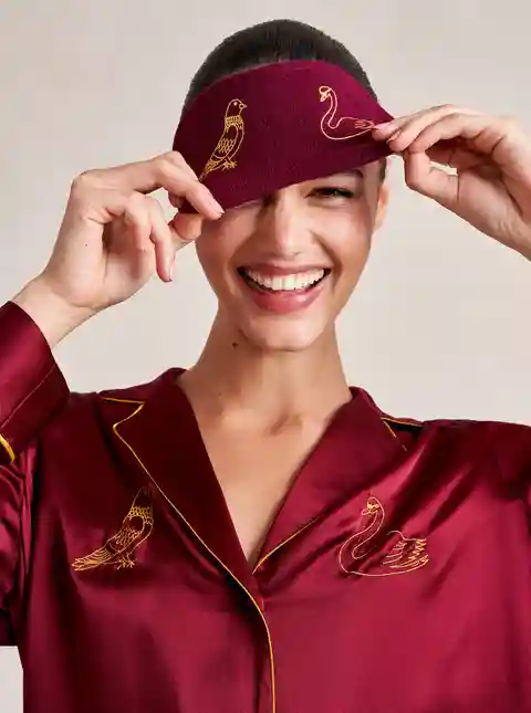 Made in collaboration with Observed By Us, the design line founded by Kirsten Dunst and Jessica Herschko, this limited editionburgundy eye mask is a playful and nostalgic take on sleepwear featuring Observed By Us' hand-drawn, story-book illustrations.