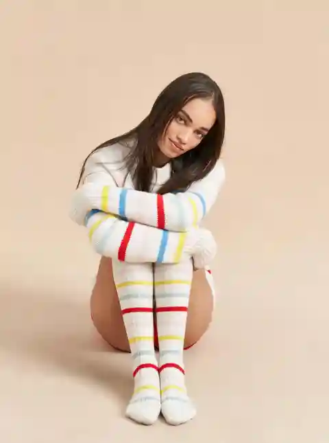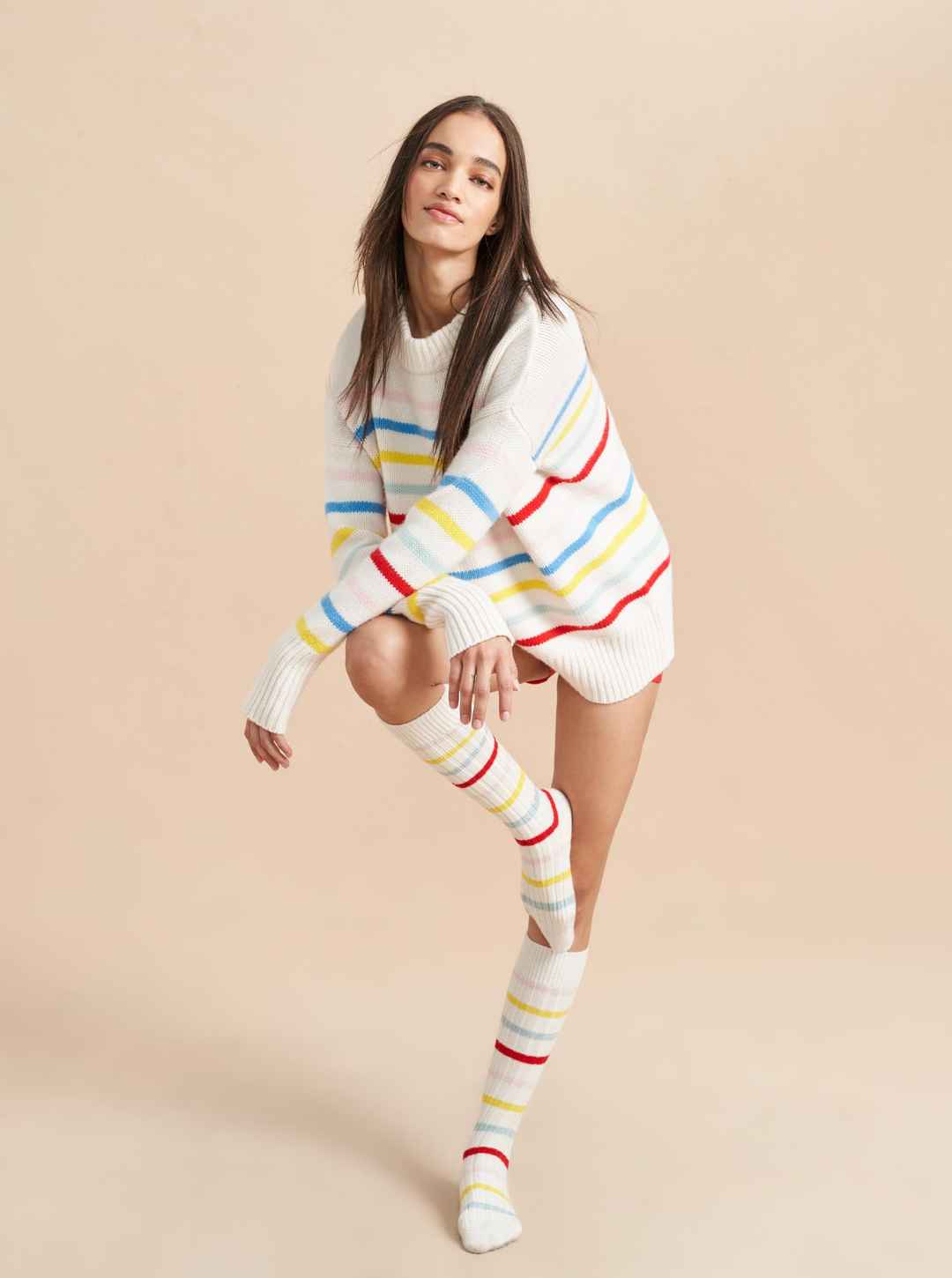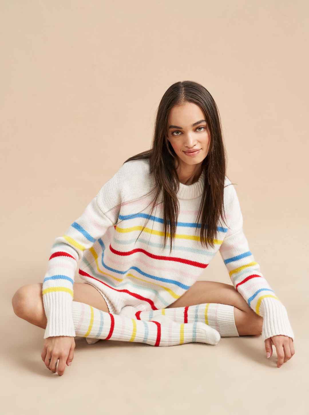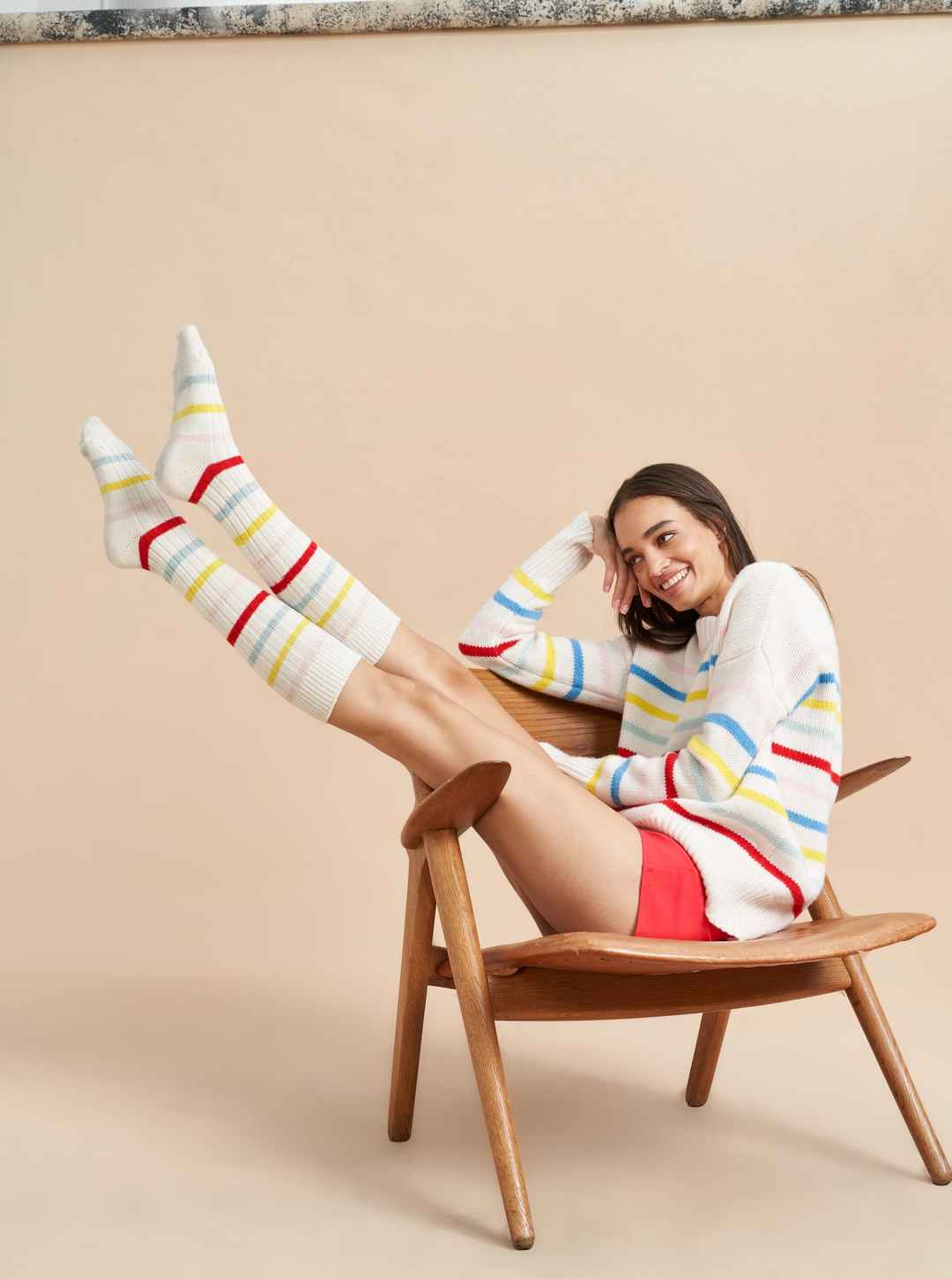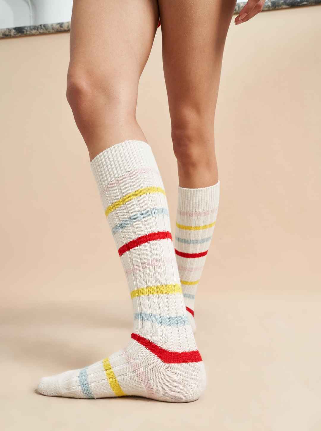 Our recycled cashmere blend, stripey socks will keep you warm, cozy andstriped from head to TOE, a La Ligne must!