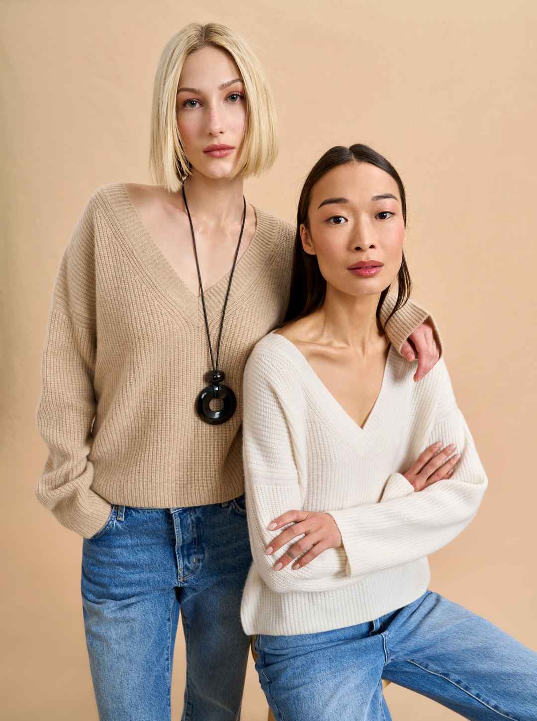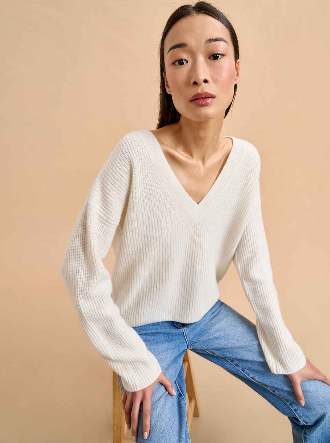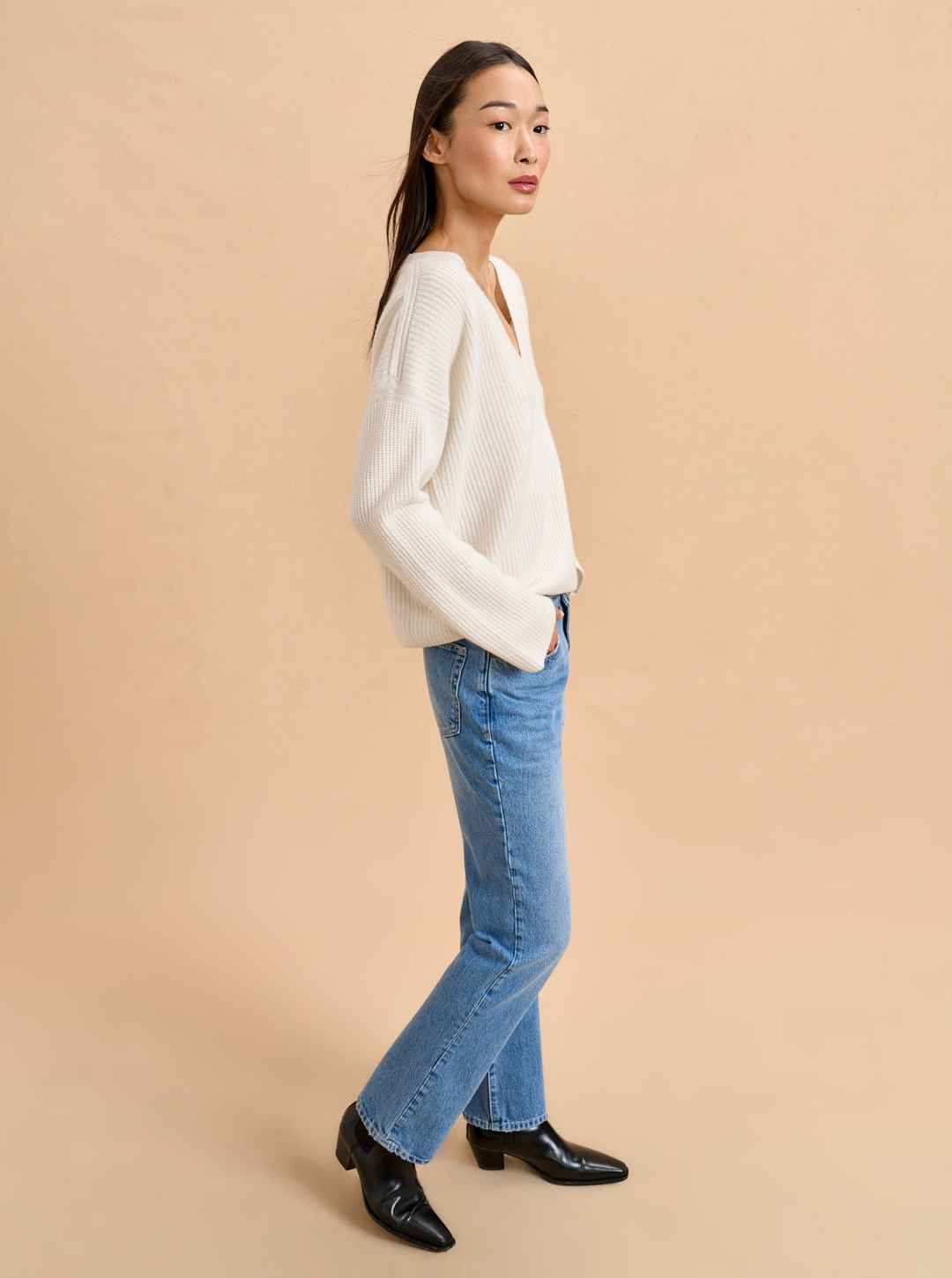 This is it. This is your everyday, never-without, take-with-you-everywhere sweater that will always have your back. Deliciously ribbed cashmere with a plunging v-neck and slightly cropped silhouette means you need one in every color for tous les jours.