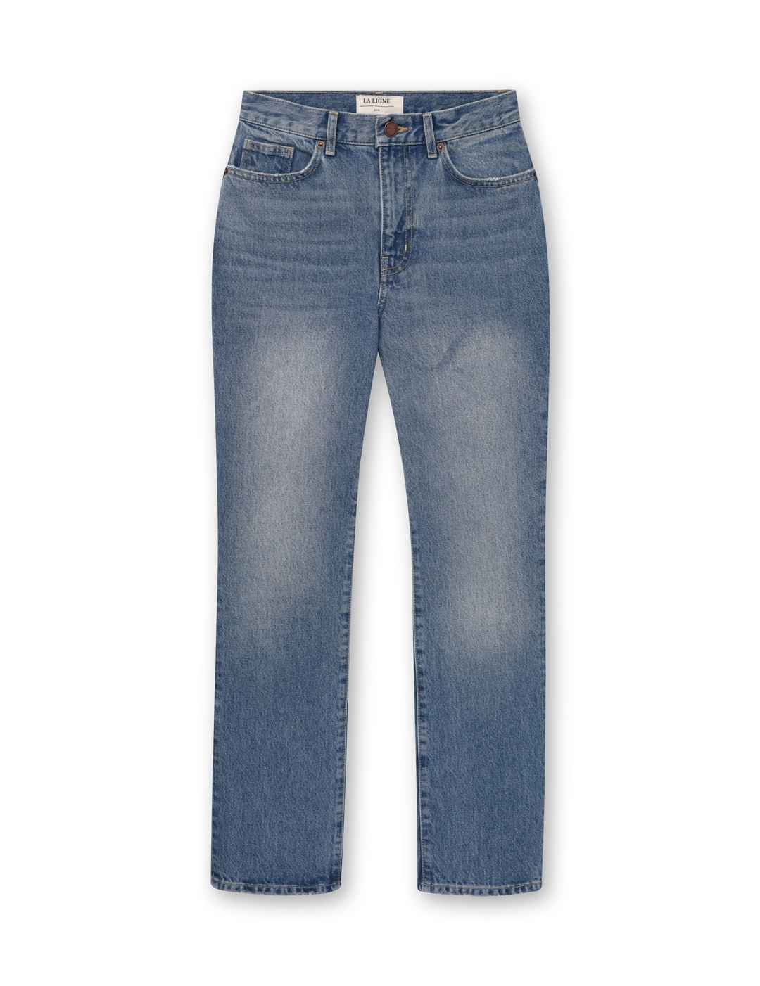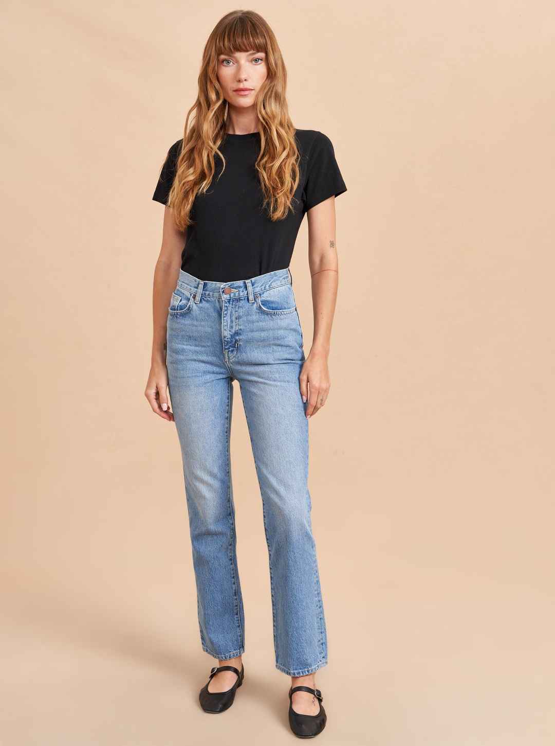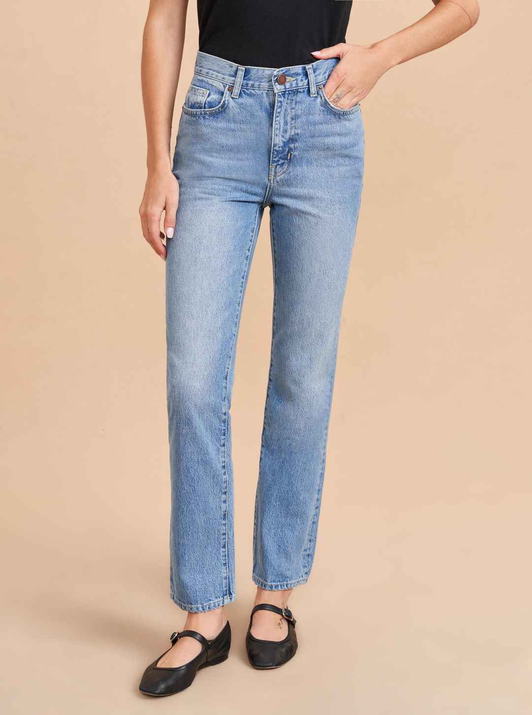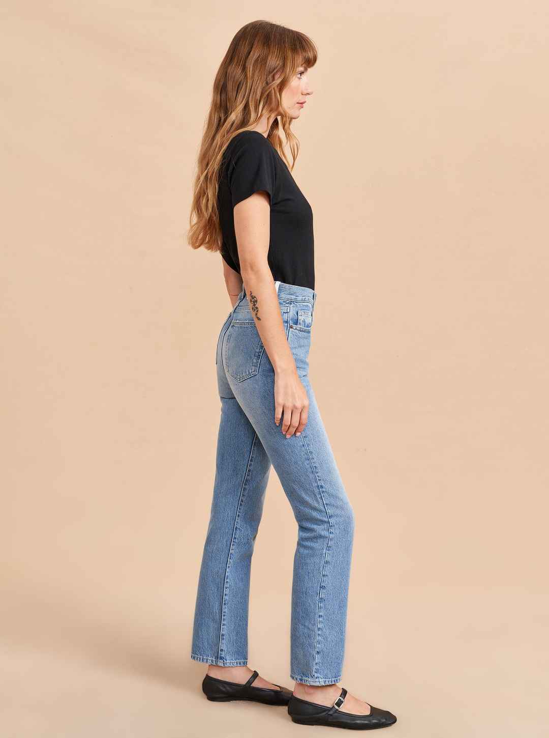 The classic, high-rise, non-stretch, straight-leg jean that gets better after each wear, never goes out of style, never disappoints and you can never get enough of, AKA The Molly jean or The Mom Jean, aptly named after our co-founder that will take you from 9 to 5, after hours and beyond.