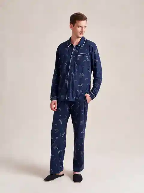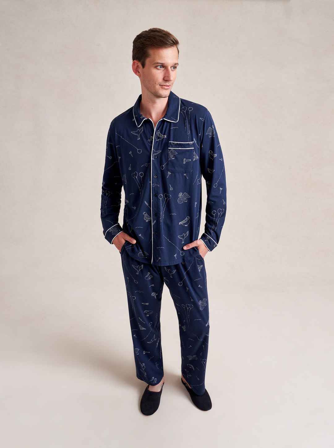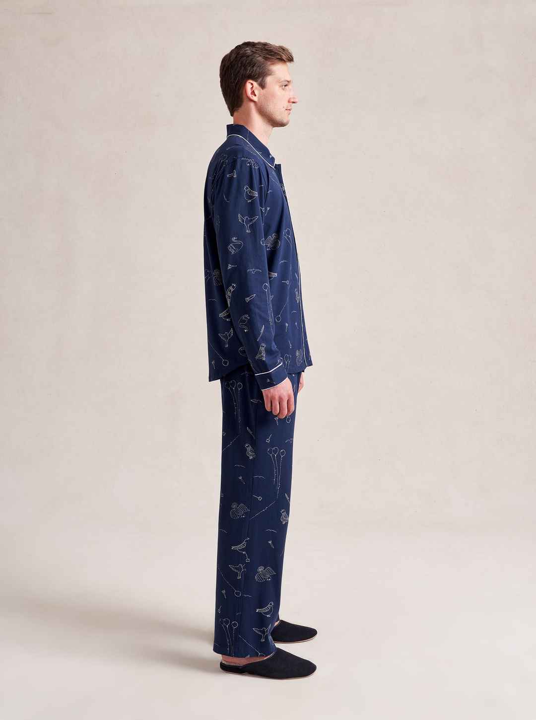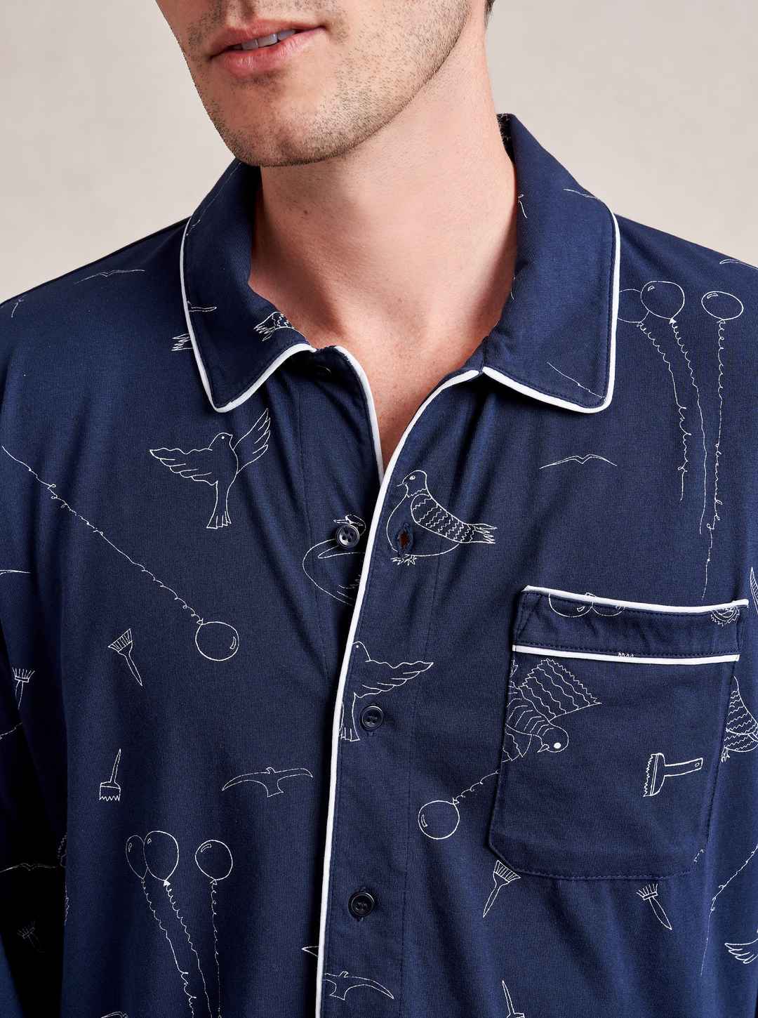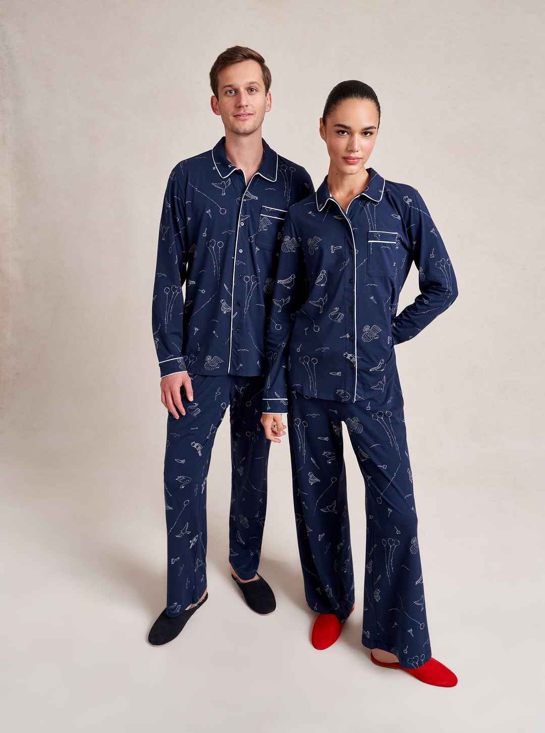 Made in collaboration with Observed By Us, the design line founded byKirsten Dunst and Jessica Herschko, these limited edition men's cotton pajamas are a playful and nostalgic take on sleepwear featuring Observed By Us' hand-drawn, story-book illustrations. This navy printed pajama set features a re...more