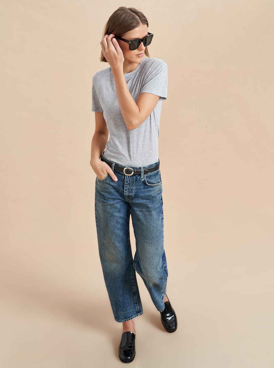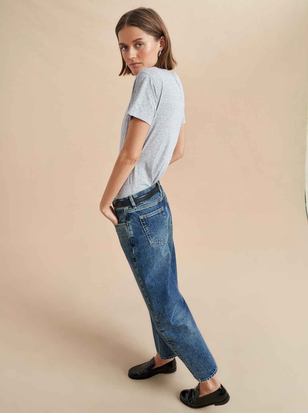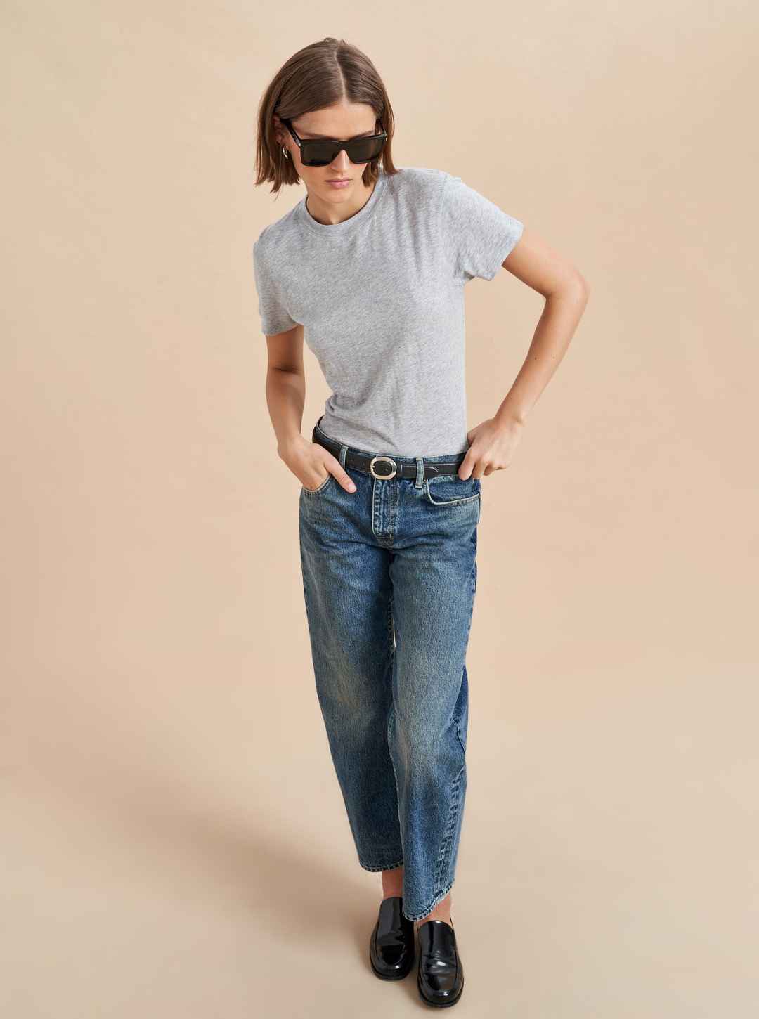 What makes the perfect tee? Why don't you ask our co-founders? Molly's vintage-inspired version in super soft cotton is more of slimmer fit, perfect for tucking into her namesake jean (or any of our jeans:-))