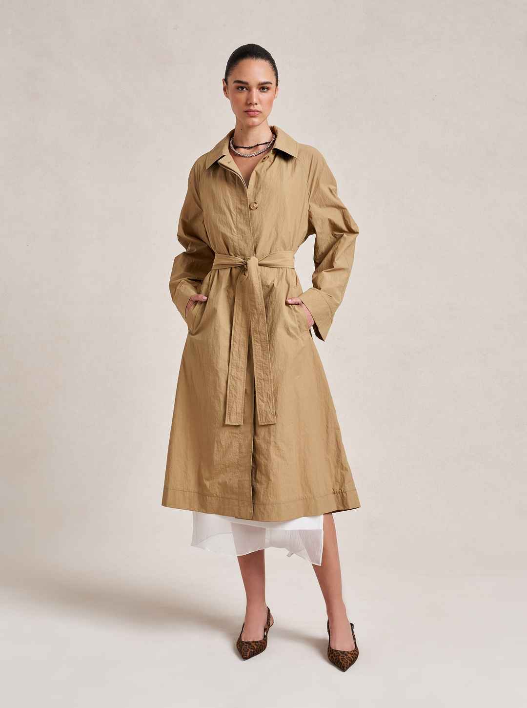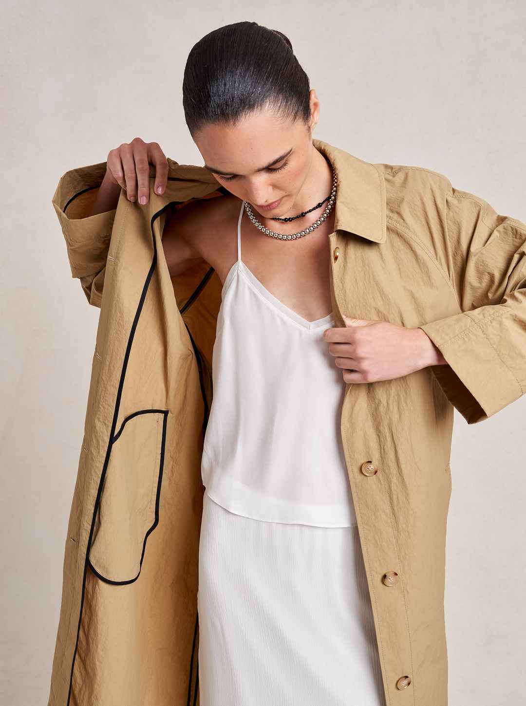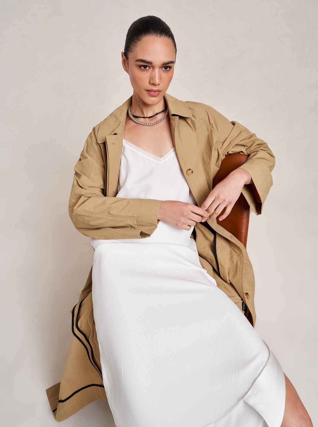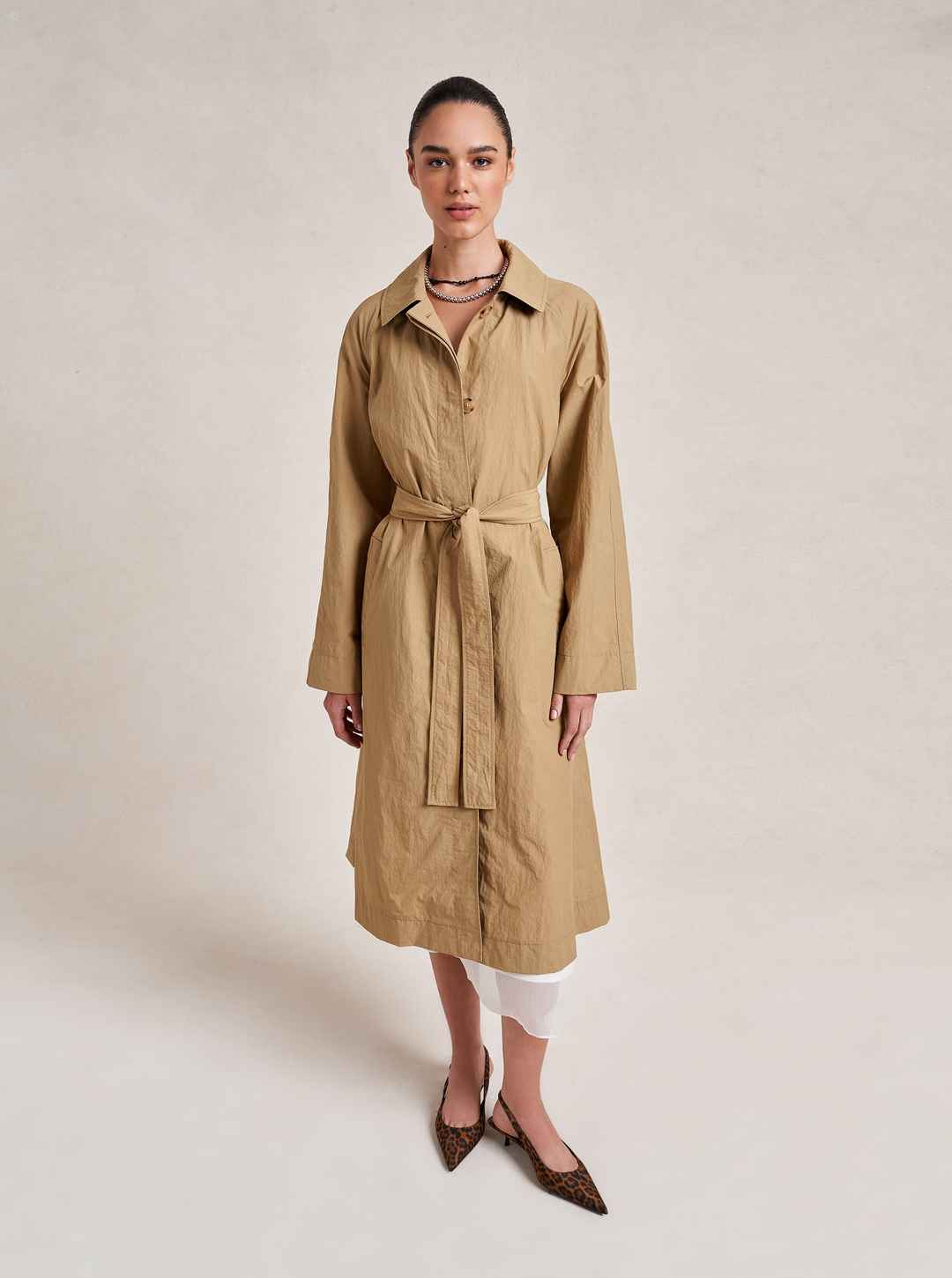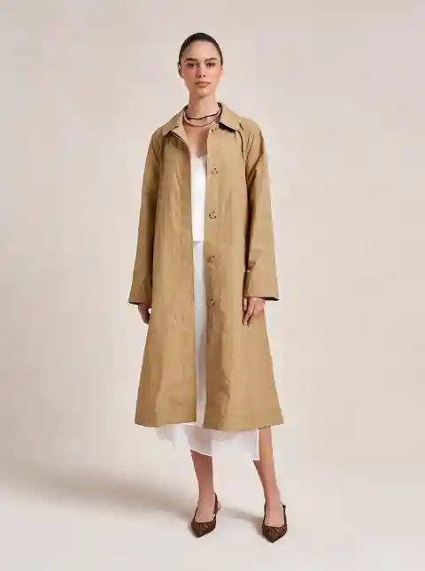 A creative collaboration born from a cherished friendship, this collection embodies Dianna's love for timeless pieces that are effortless to wear and perfectly suited for life's adventures. This single breasted trench coat with raglan sleeves and hidden button placket is a study in contemporary eleg...more