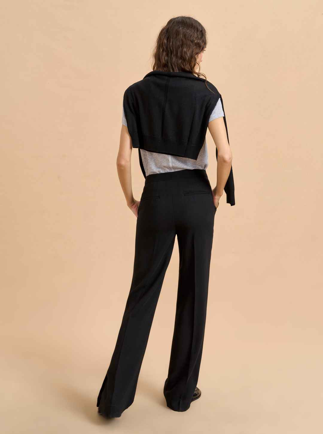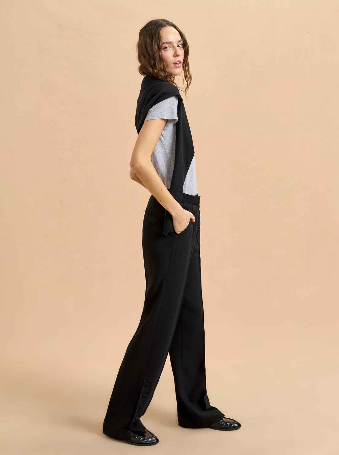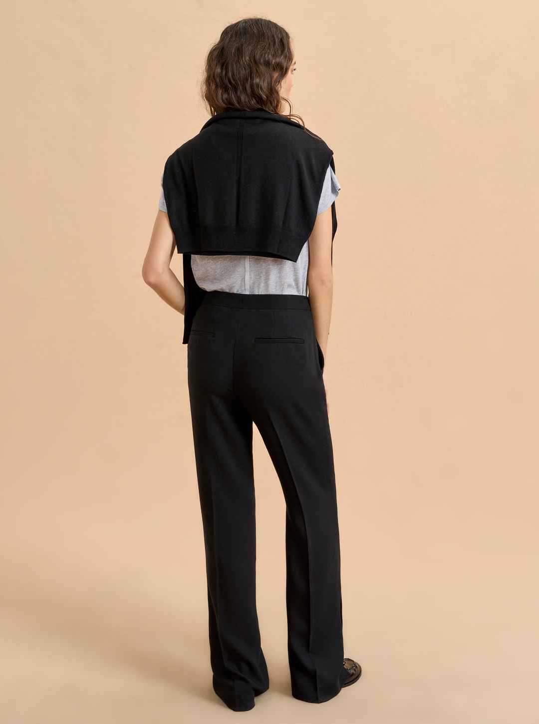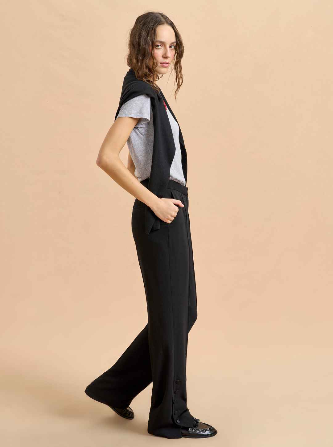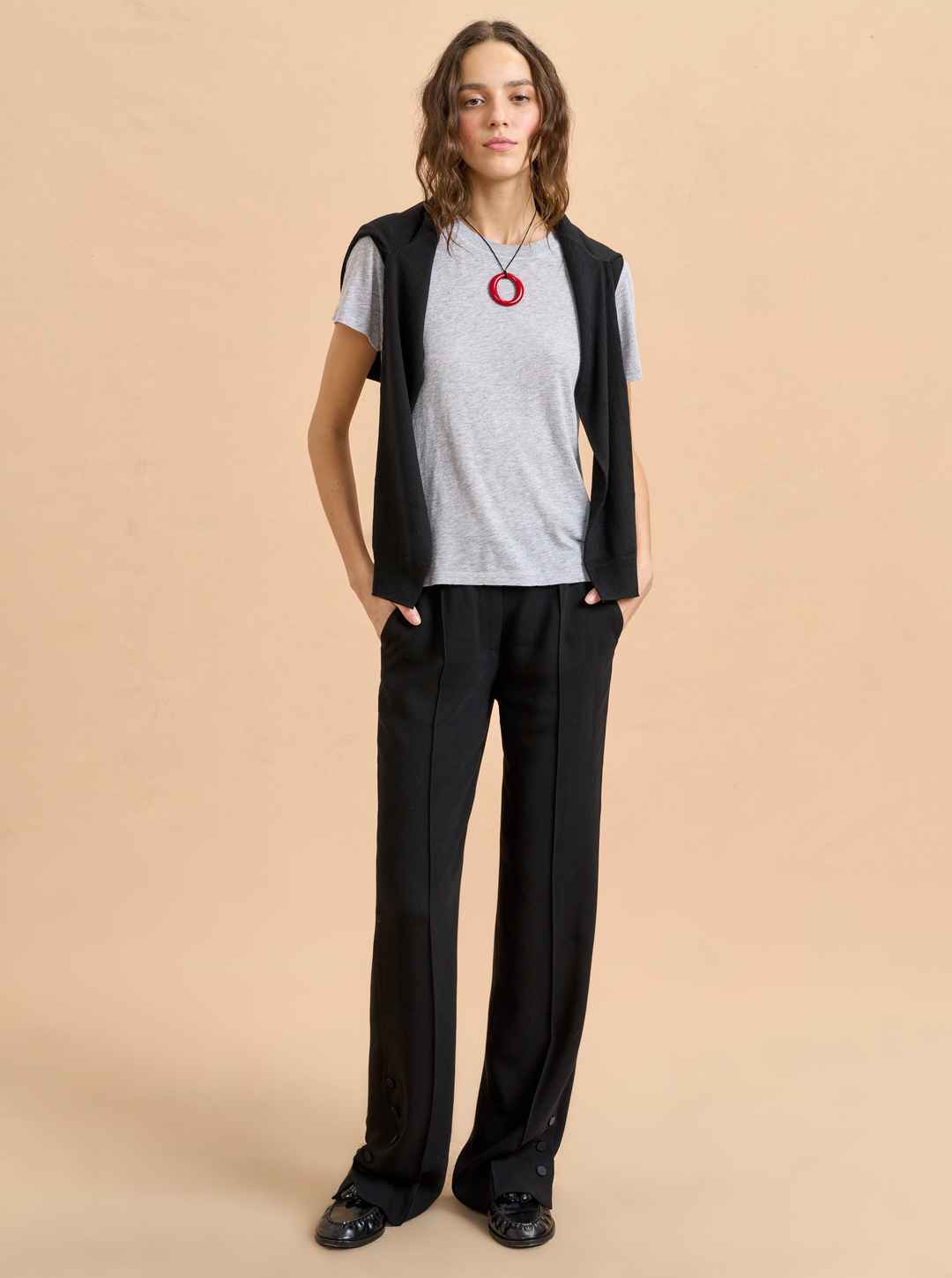 A perfect tuxedo trouser in a slim, straight leg with satin covered buttons at the hem, this power pant is good to go with any topper: blouse, knit or camisole.