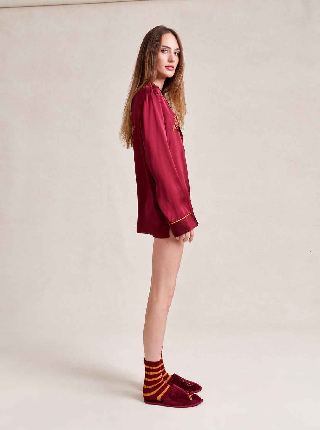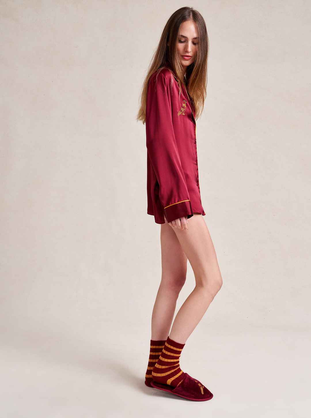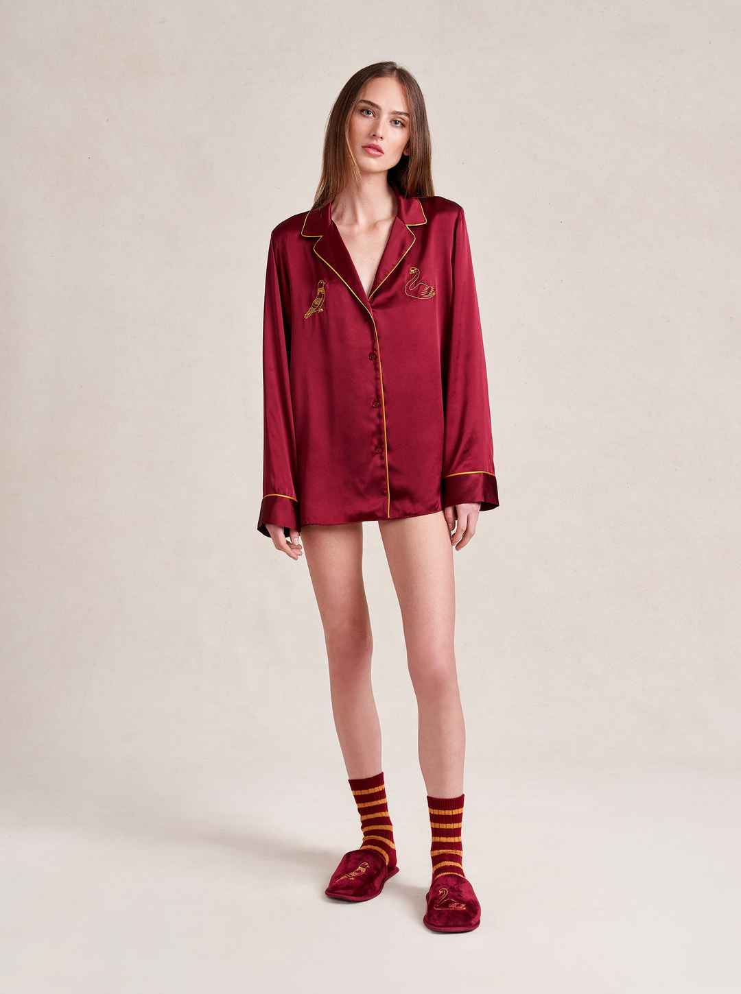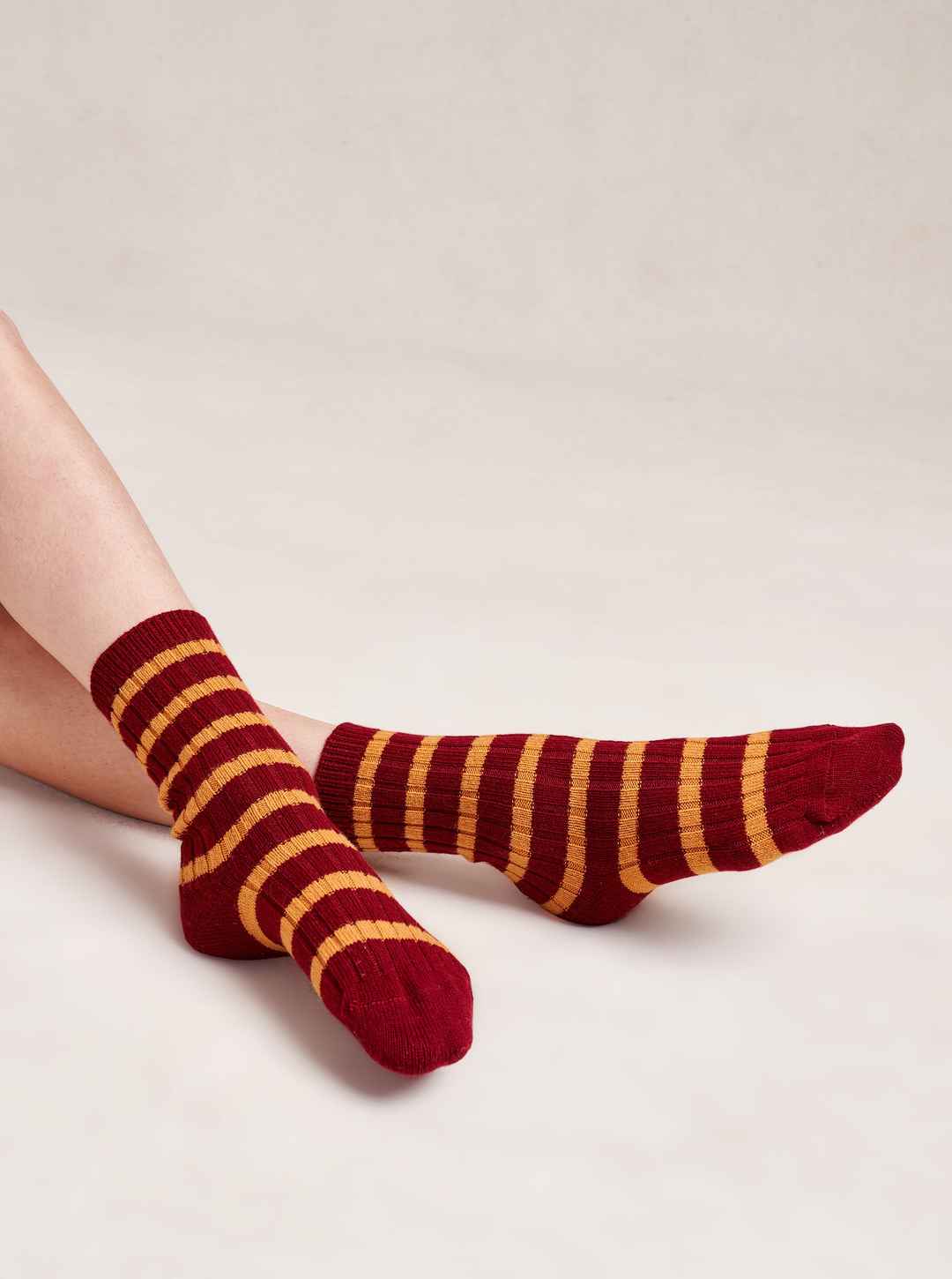 Made in collaboration with Observed By Us, the design line founded by Kirsten Dunst and Jessica Herschko, these limited edition, cashmere blend,burgundy striped socks will keep you warm, cozy and striped from head to toe.