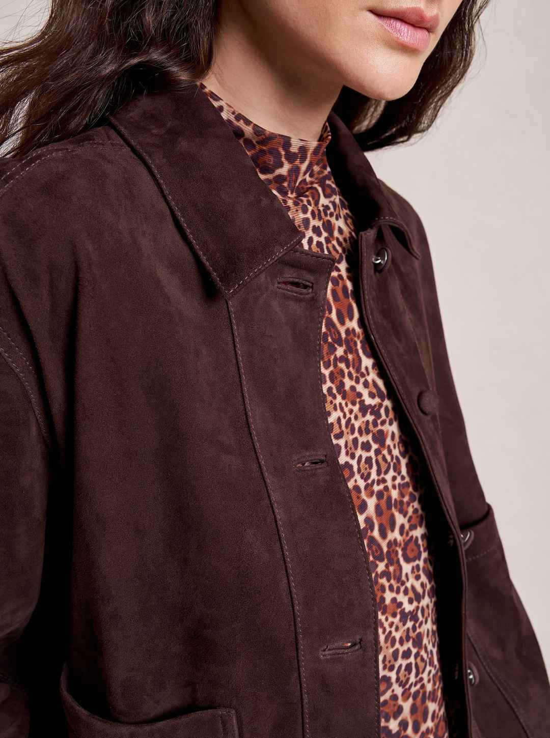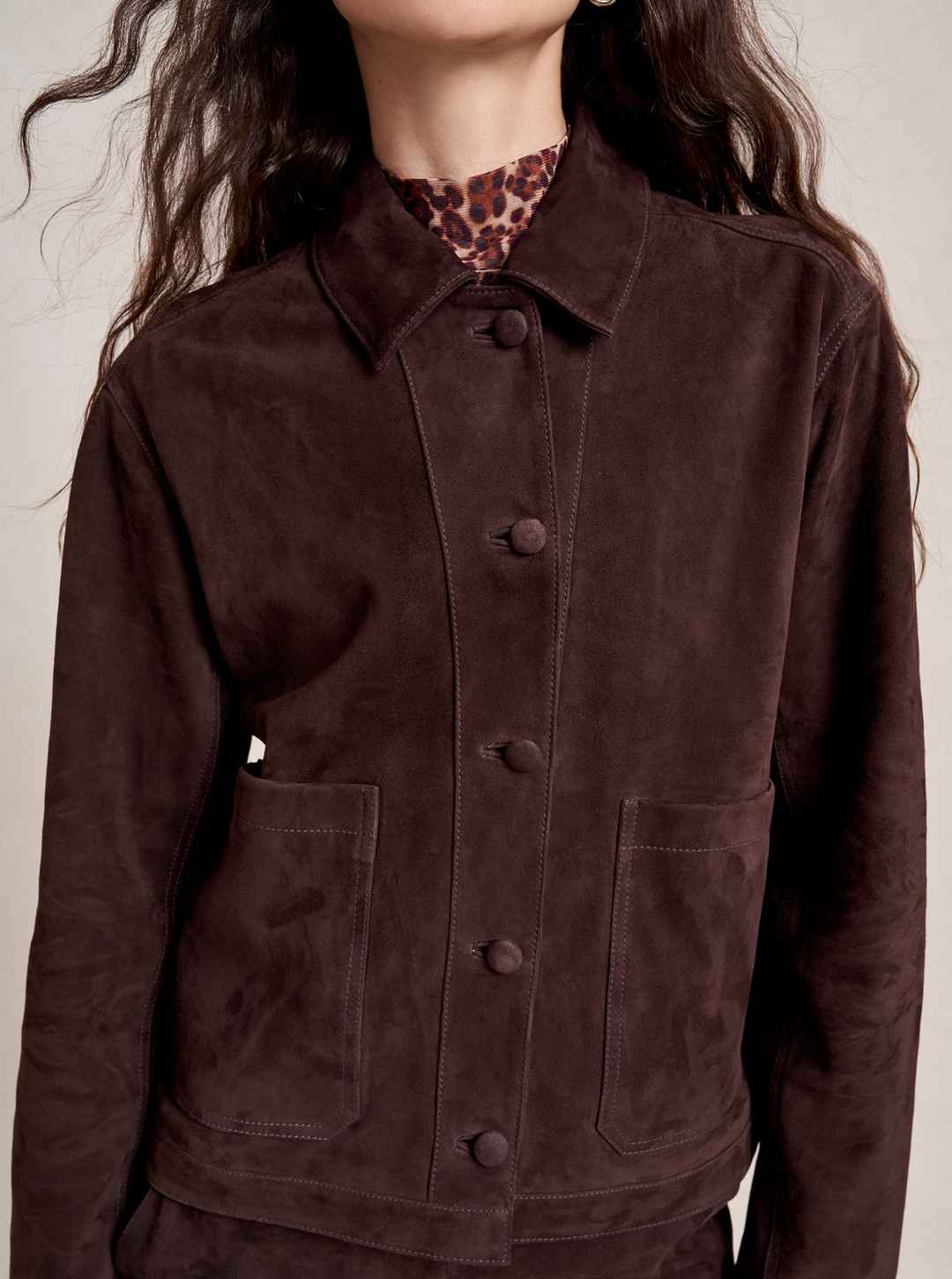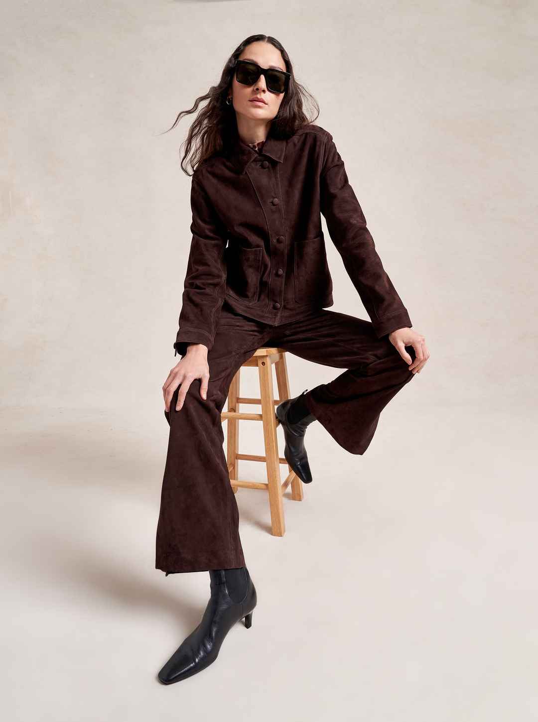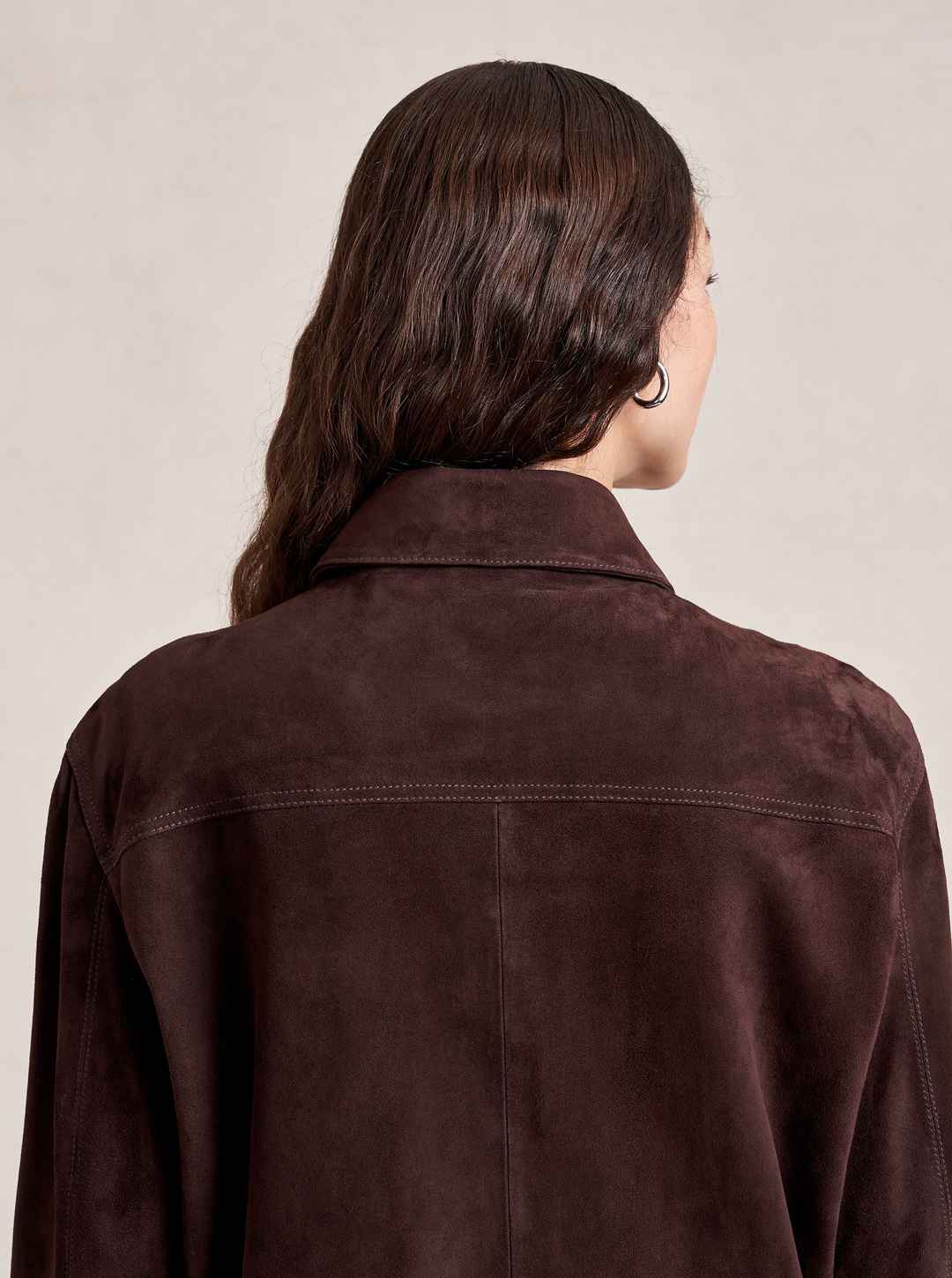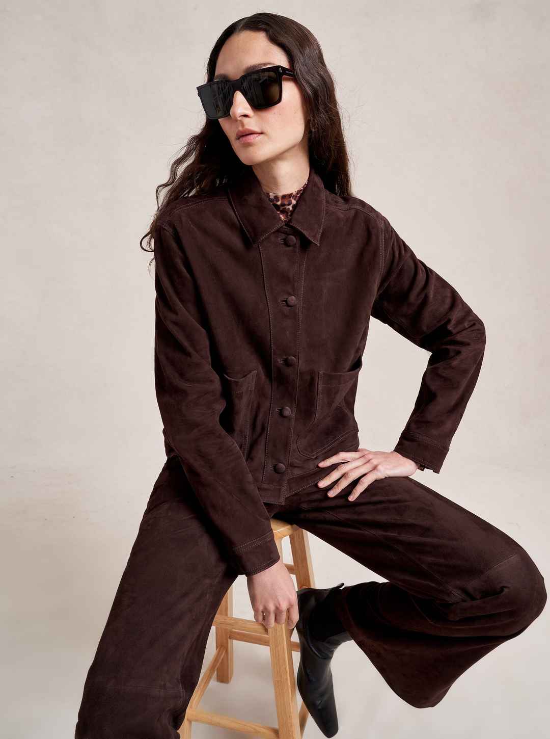 Based on our best-selling Val Jackets, this one in deliciously rich chocolate suede is cropped but roomy to go over a knit and an easy winner when paired back to our suede Albert Trouser.